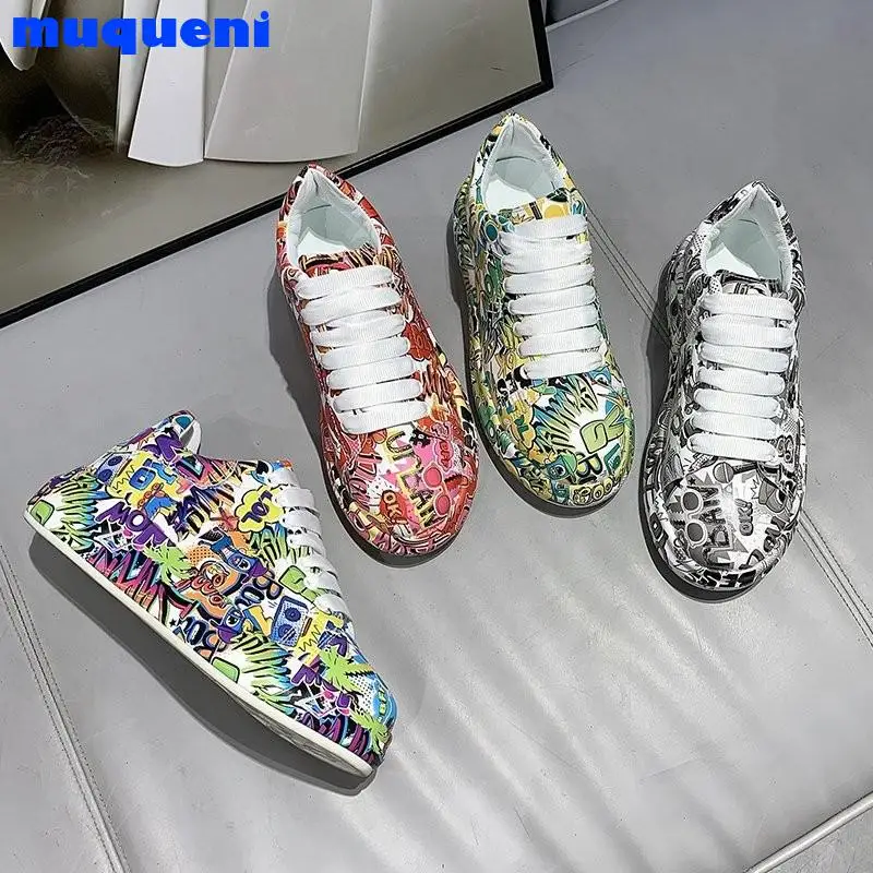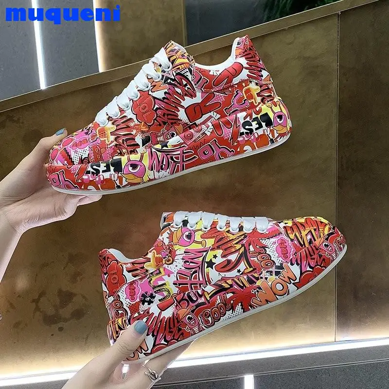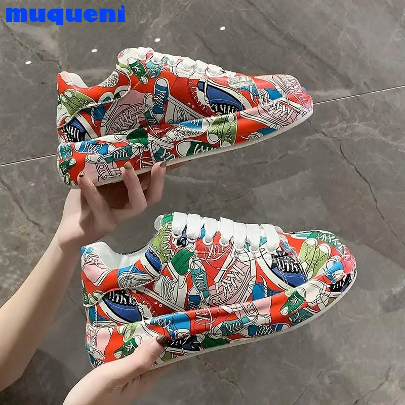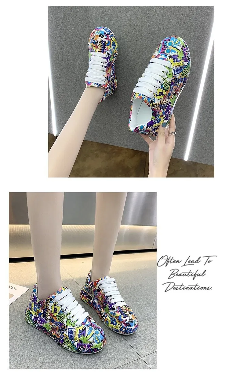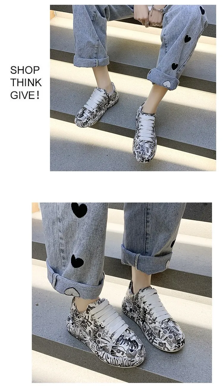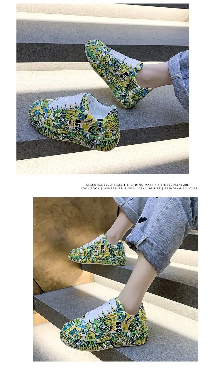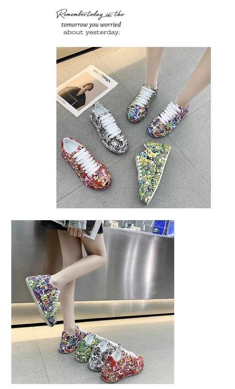 Женская повседневная обувь на толстой подошве с граффитиUS $22,46