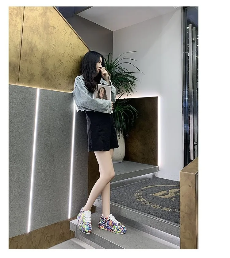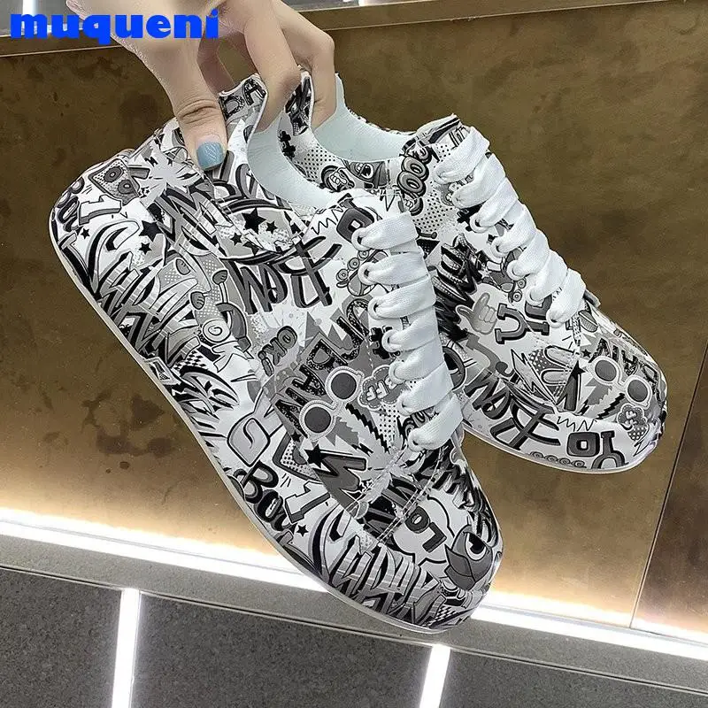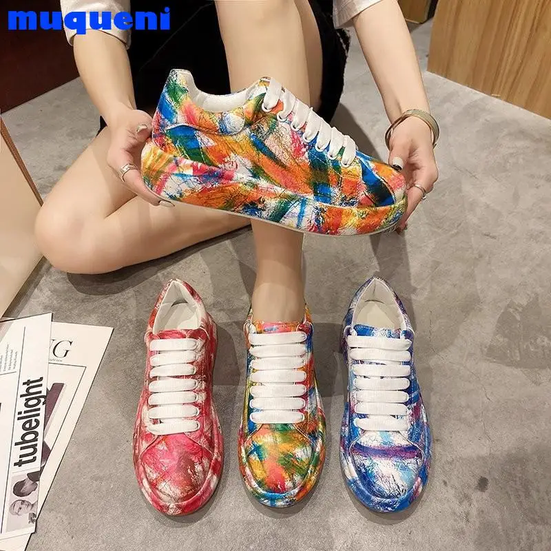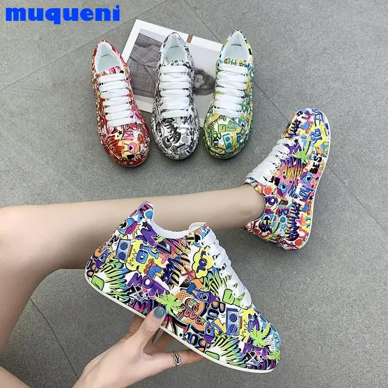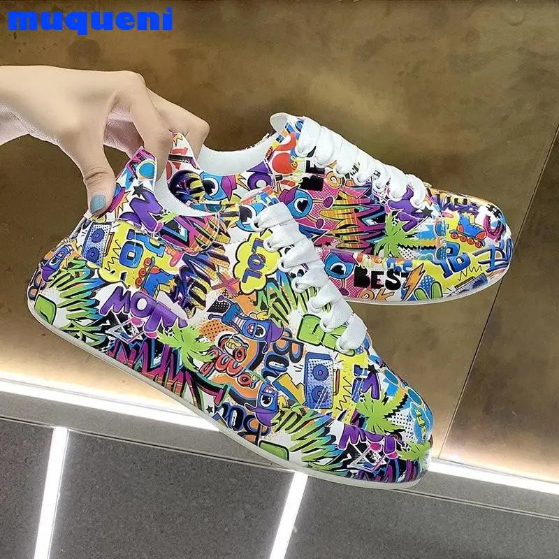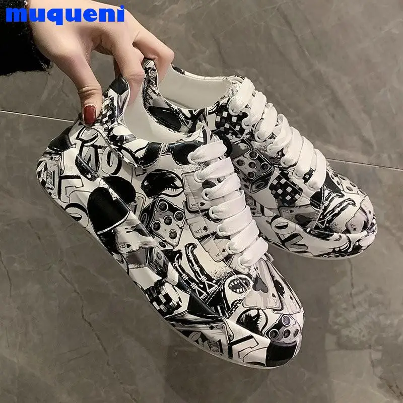 Женские повседневные туфли на толстой подошве с граффити 2021 женские дышащие легкие туфли на платформе белые туфли увеличенная повседневная обувь