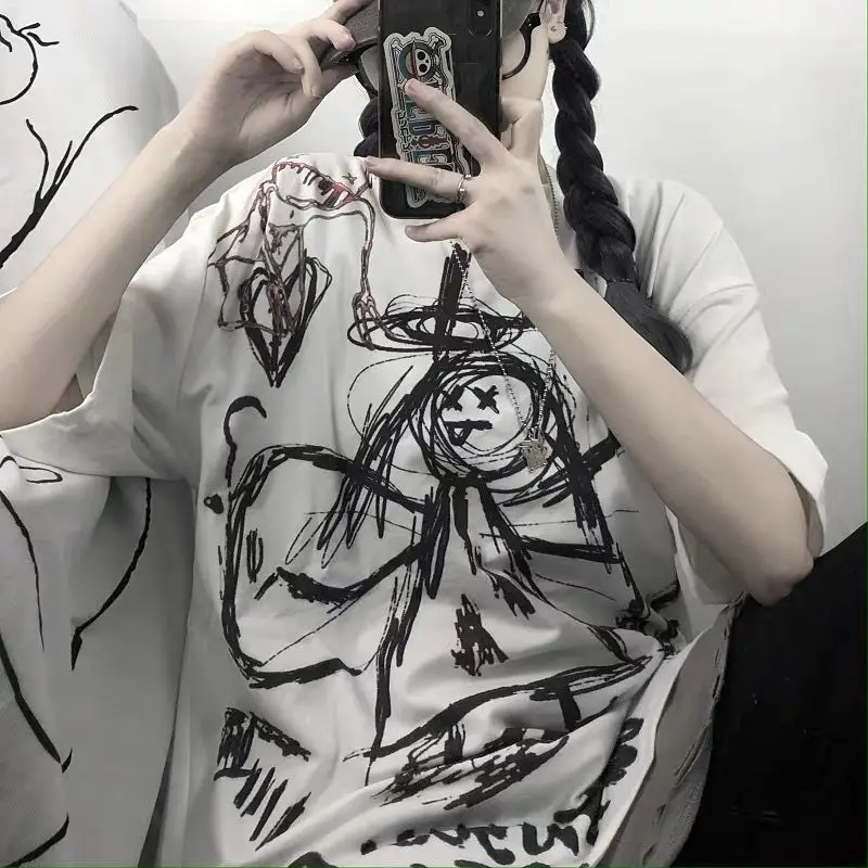 Футболка женская летняя оверсайз с коротким рукавом в стиле панк-Го...