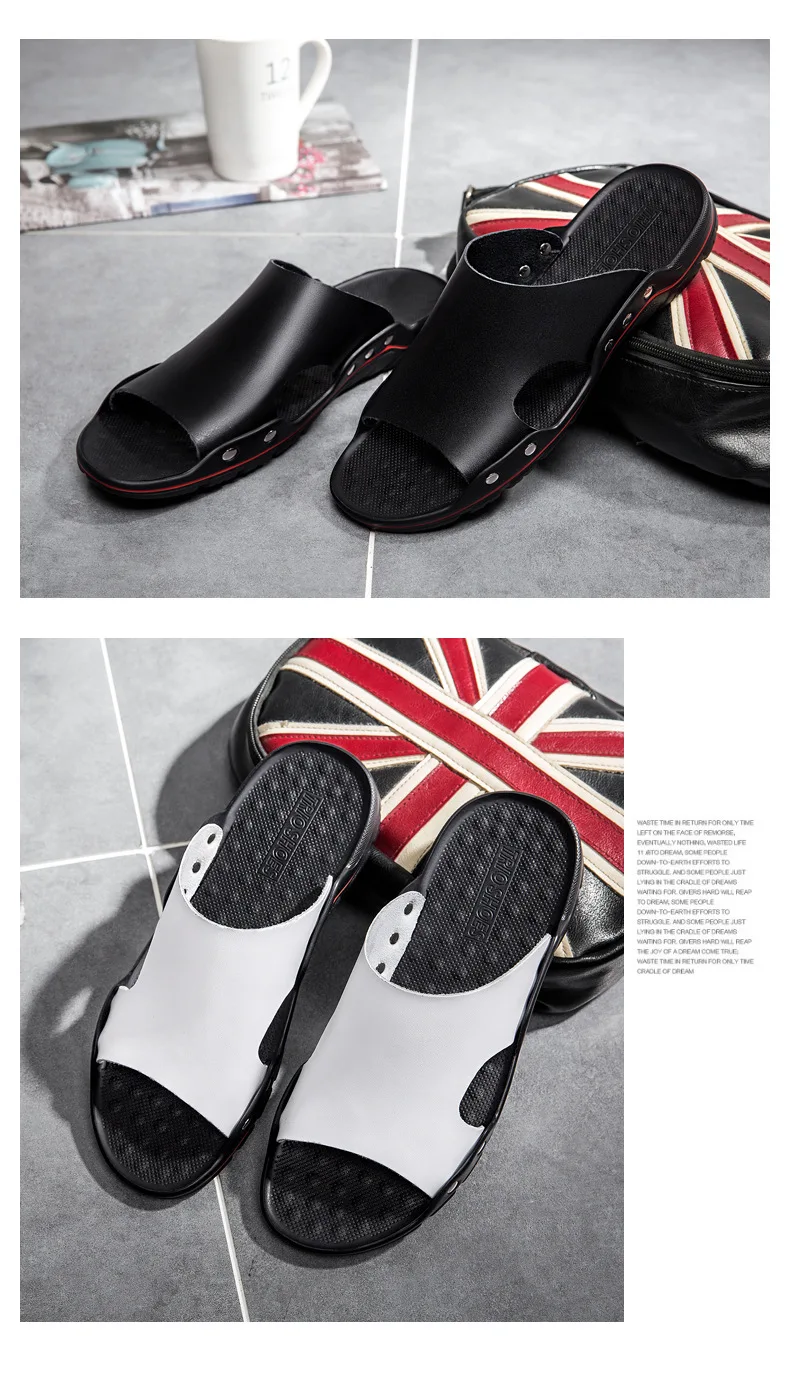 Сандалии мужские кожаные, пляжные тапочки, повседневная обувь на плоской подошве, уличная пляжная обувь, большой размер 45, лето 2021