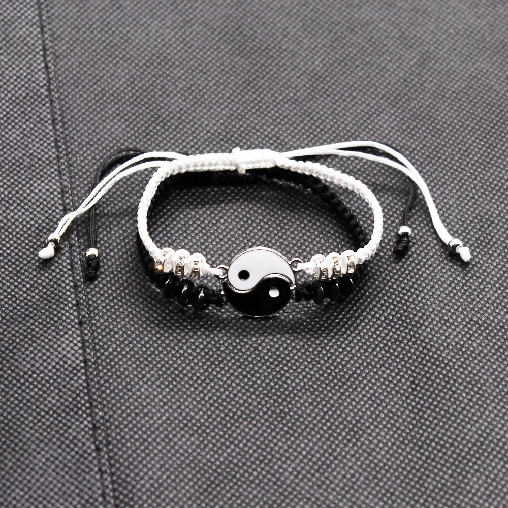 Комплект женских браслетов с шармами Лучший Друг, черно-белые ювелирные изделия ручной работы для пар, 1 пара регулируемых браслетов-цепочек Инь Янь