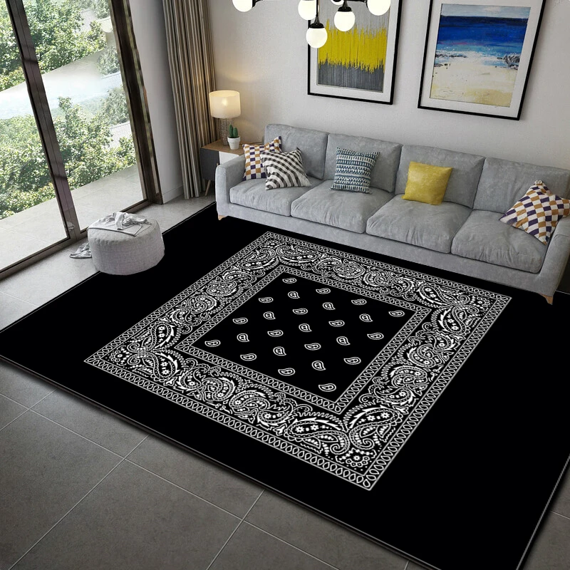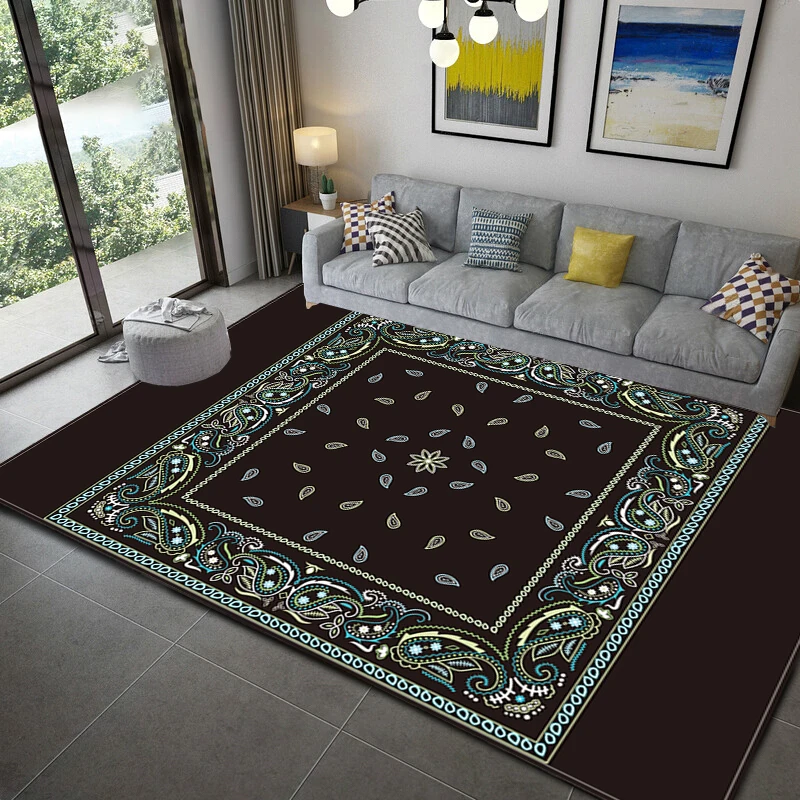Нескользящий моющийся ковер с рисунком бандана, коврики с 3D рисунком, коврик для спальни, гостиной, спальни