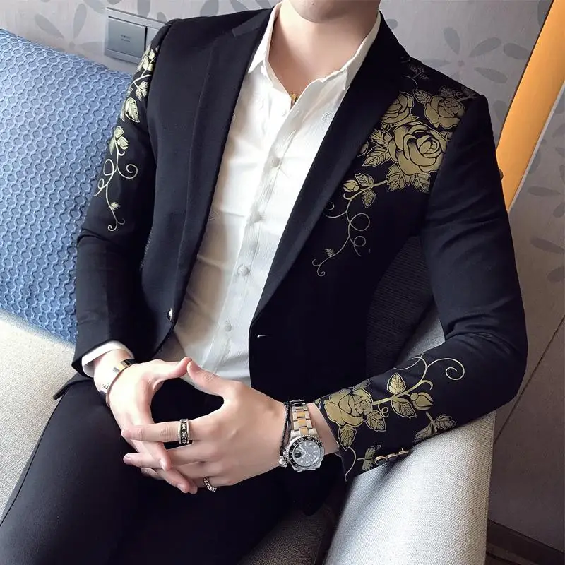 Роскошный Блейзер с золотым принтом, Мужской приталенный Блейзер, Мужской Блейзер, одежда для сцены для Dj певицы, мужские блейзеры (1 шт.)