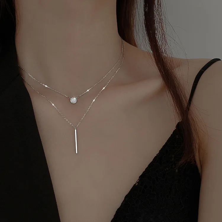 Женское Двухслойное длинное ожерелье из серебра 925 пробы с цирконом