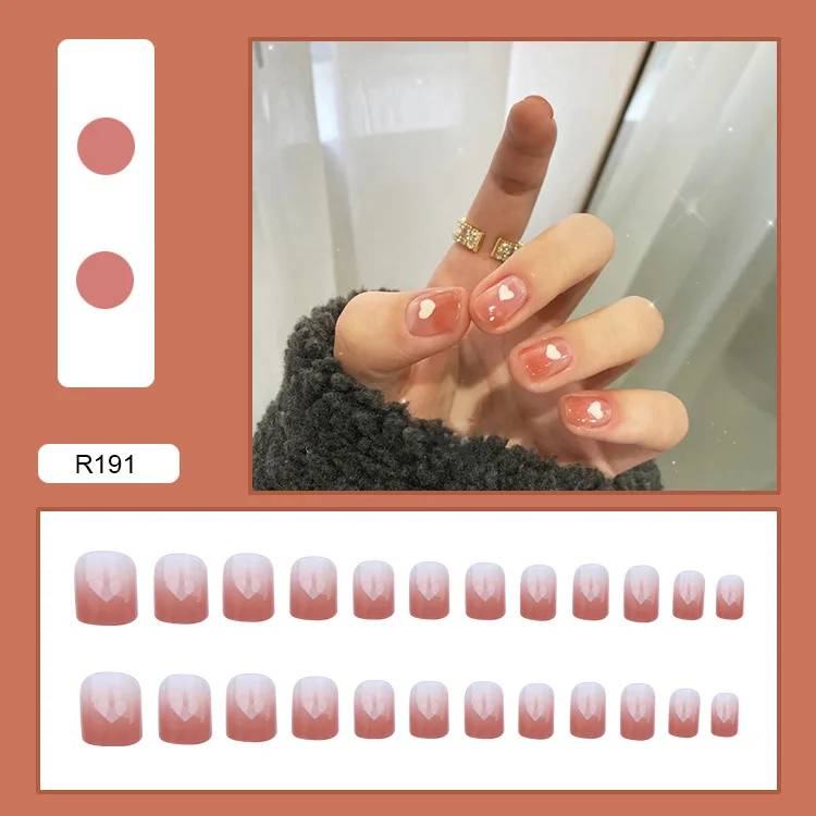 24 шт./компл., Короткие Розовые накладные ногти телесного цвета, квадратные милые белые звезды, рисунок сердца, наклейка для ногтей для девочек, акриловые накладные ногти