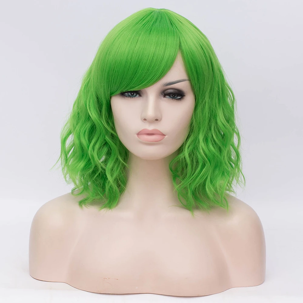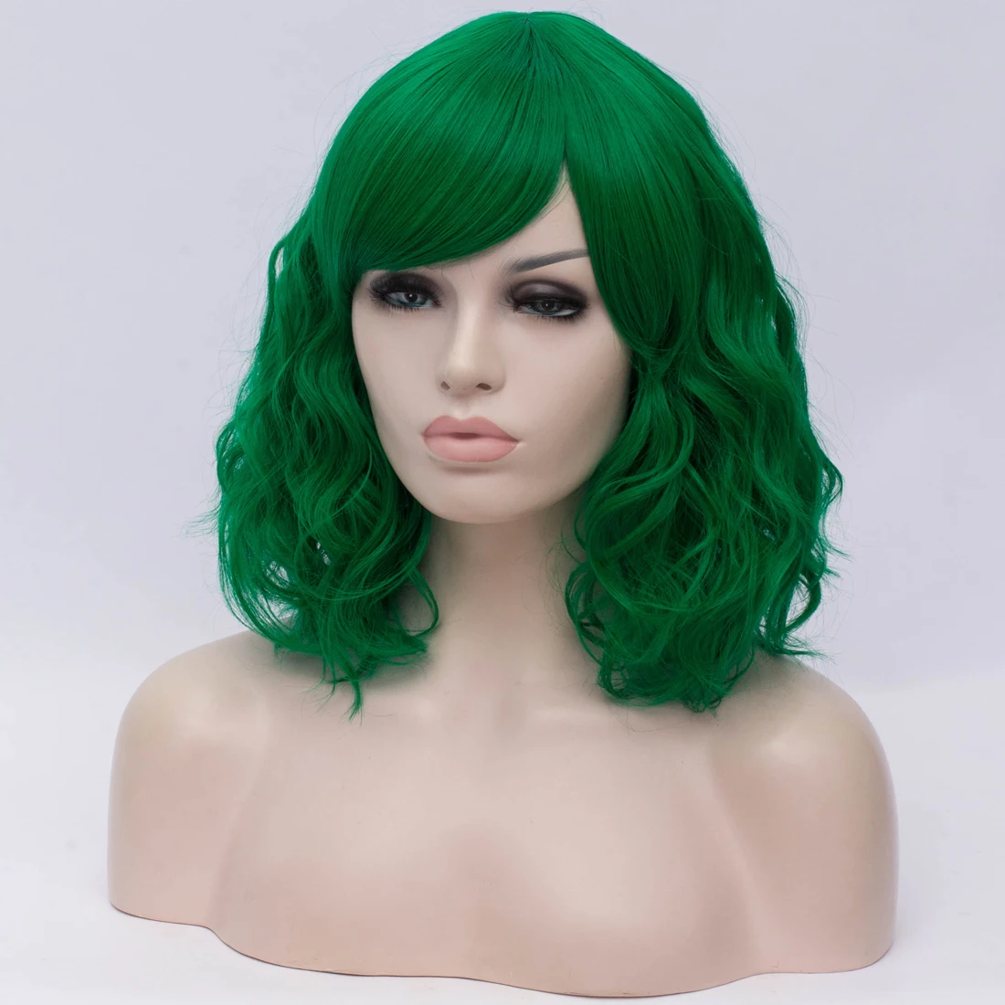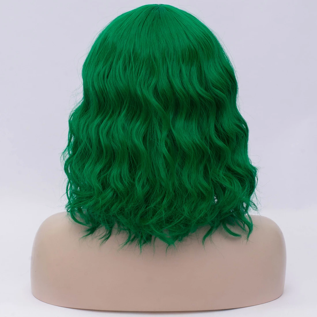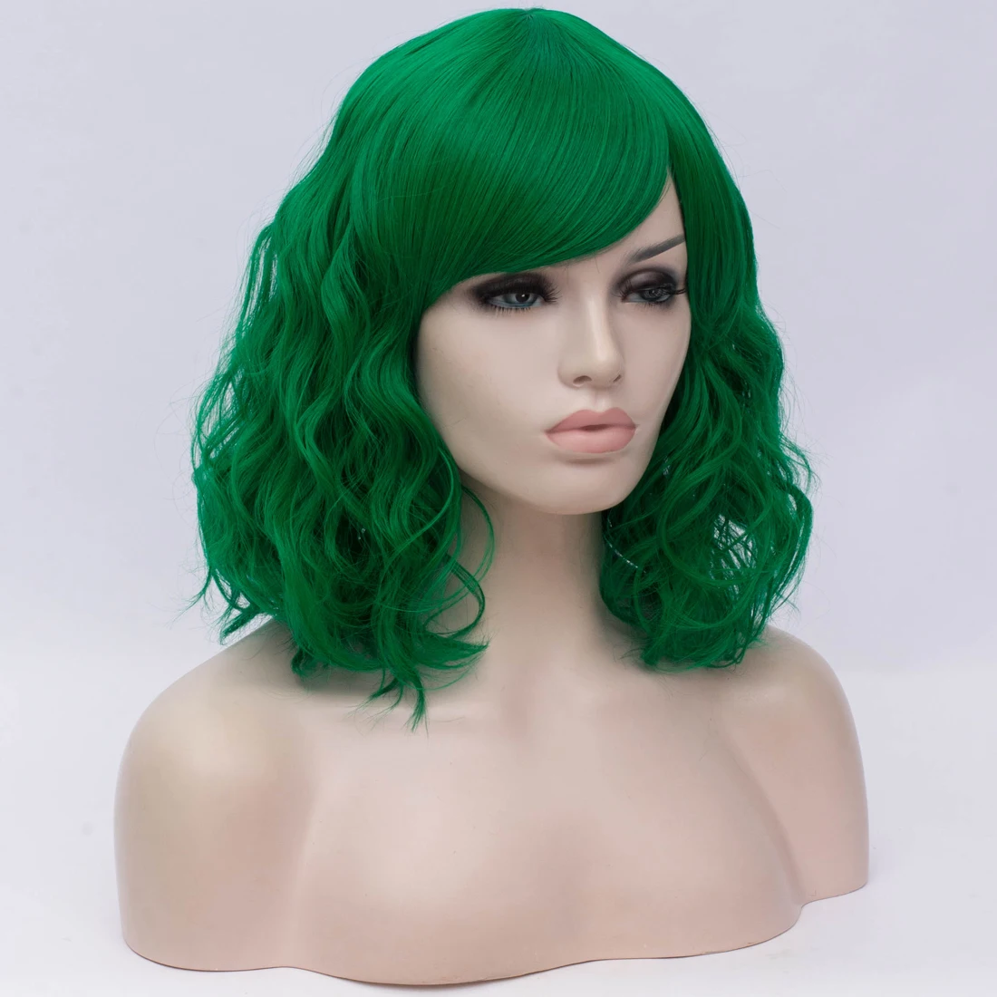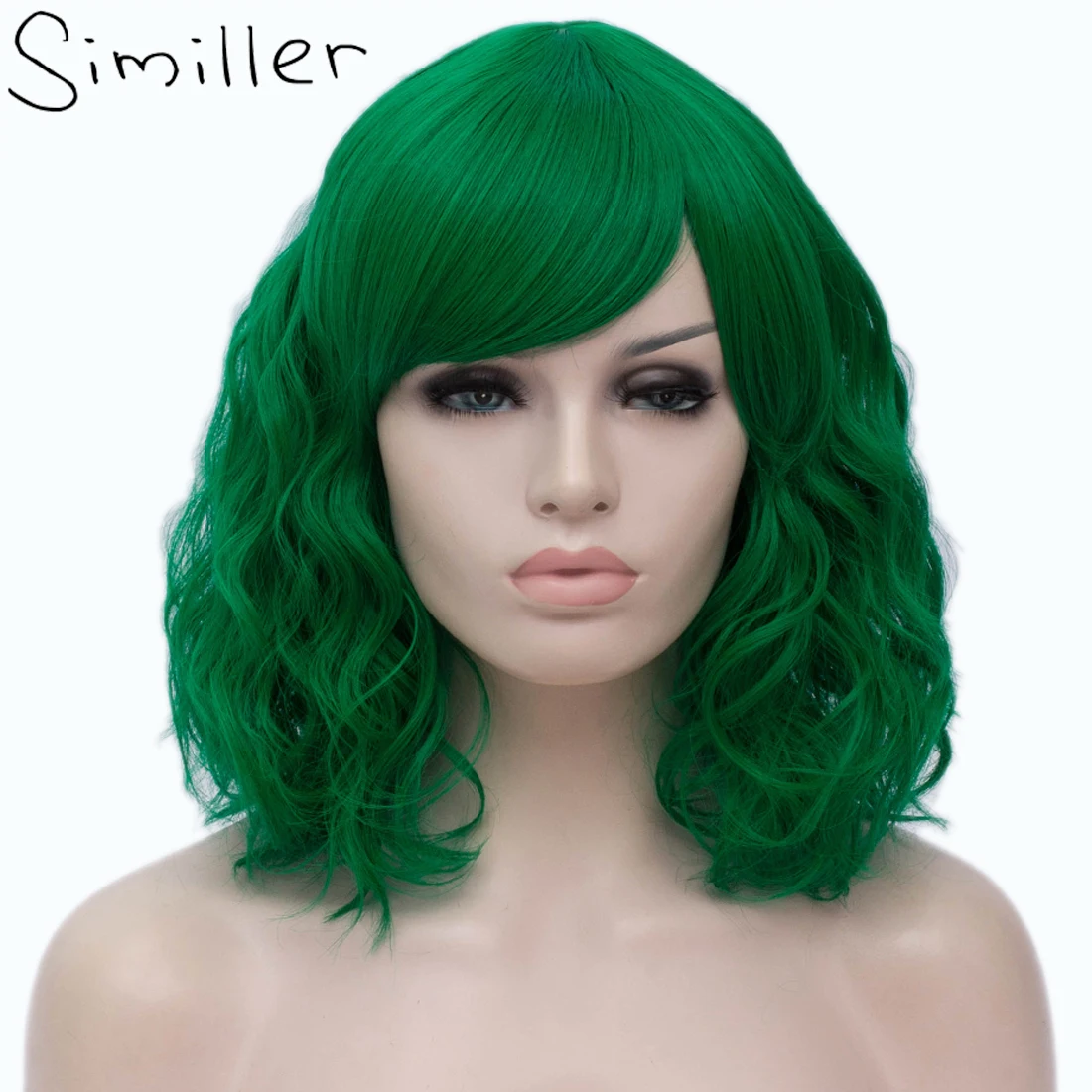 Similler короткие синтетические парики для женщин кудрявые парики для косплея с челкой термостойкие волоконные темно-зеленые синие
