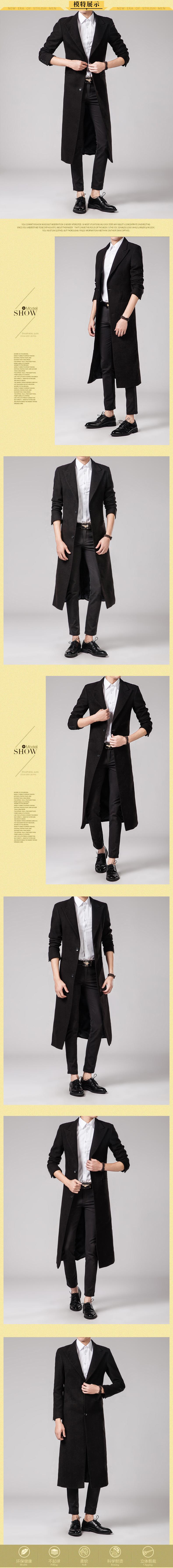 Мужской облегающий черный деловой Тренч из тонкой шерстяной ткани, ...