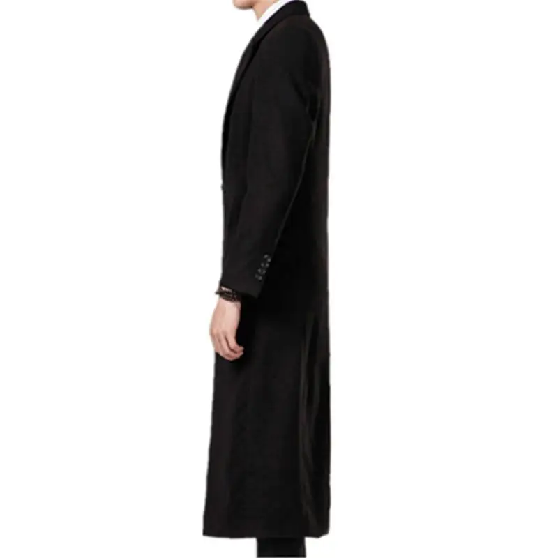 Мужские шерстяные пальто осень-зима Новые однотонные Цвет высококачественный мужский длинный шерстяной пальто черный роскошное пальто из шерсти и синтетического волокна мужской
