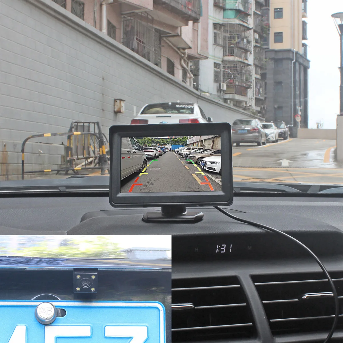 Автомобильный монитор 4,3 дюйма, камера заднего вида со светодиодны...
