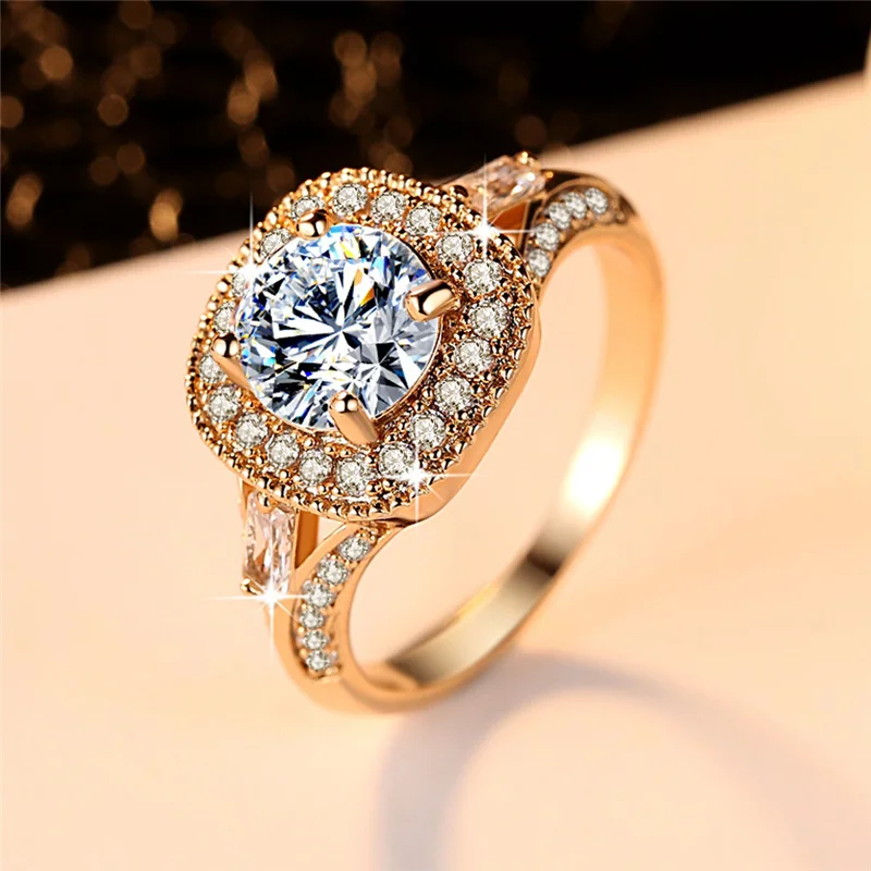 Женское кольцо, простое блестящее круглое кольцо цвета шампанского с блестками, роскошное женское кольцо с кристаллами, модное темпераментное ювелирное изделие для девушек, подарок, Лидер продаж