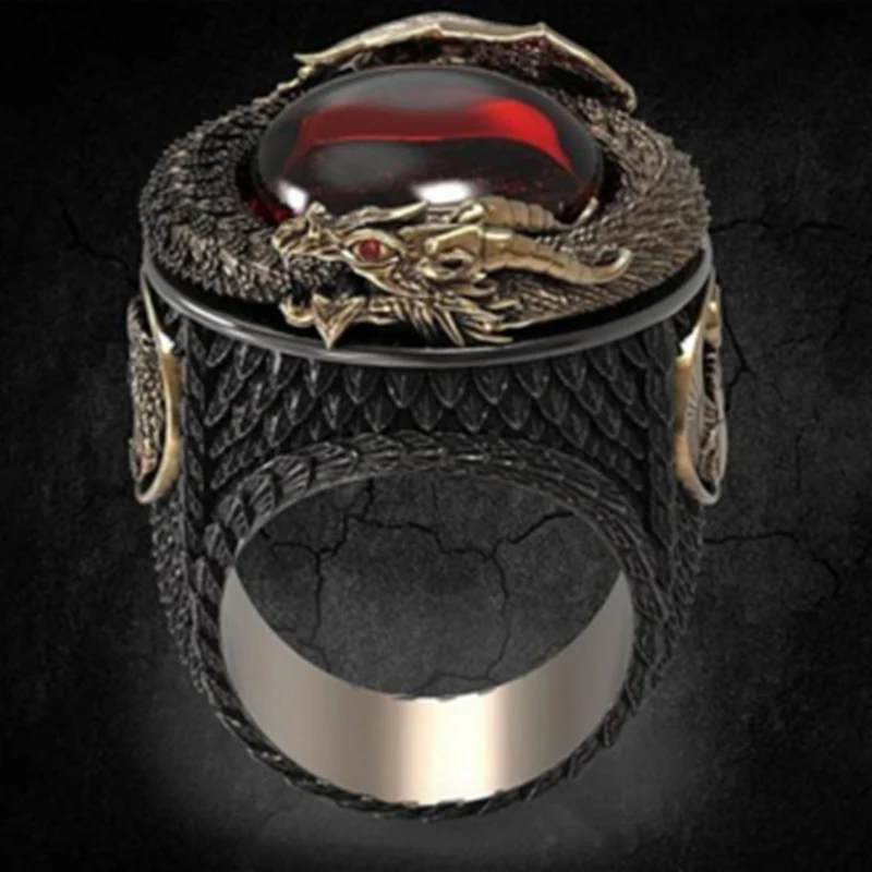 Новый Самая продаваемая ювелирные изделия двухцветная Ретро domineered Резьба Дракон набор колец циркон кольцо обручальное хэллоуинские кольца для мужчин