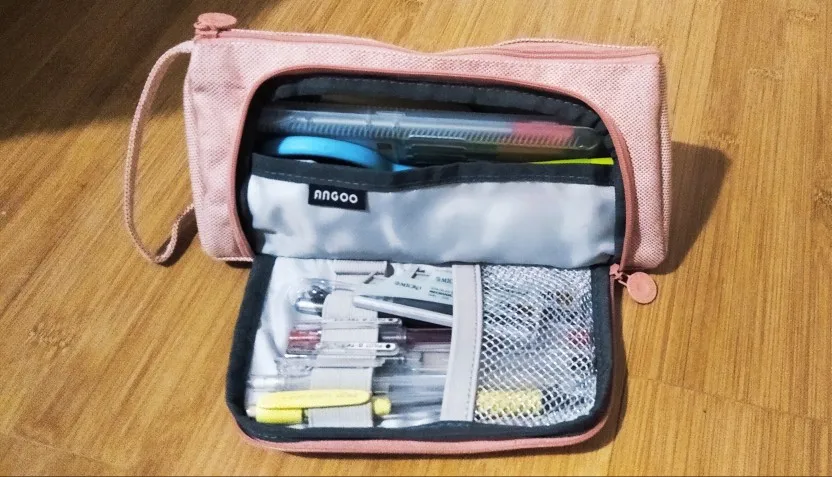 Сумка-Органайзер для карандашей, однотонная, розовая, для школы, ручка для девочек, холщовая, офисные принадлежности, чехол для макияжа, подарочная коробка
