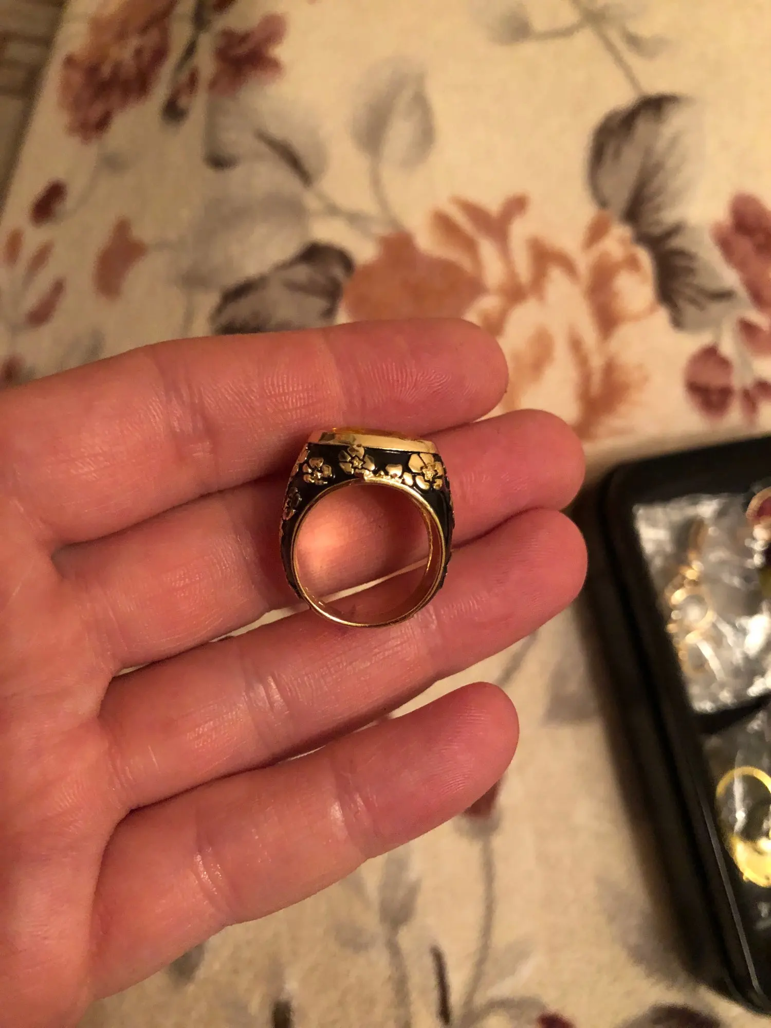 Большое кольцо золотого цвета мужское массивное властительное кольц...
