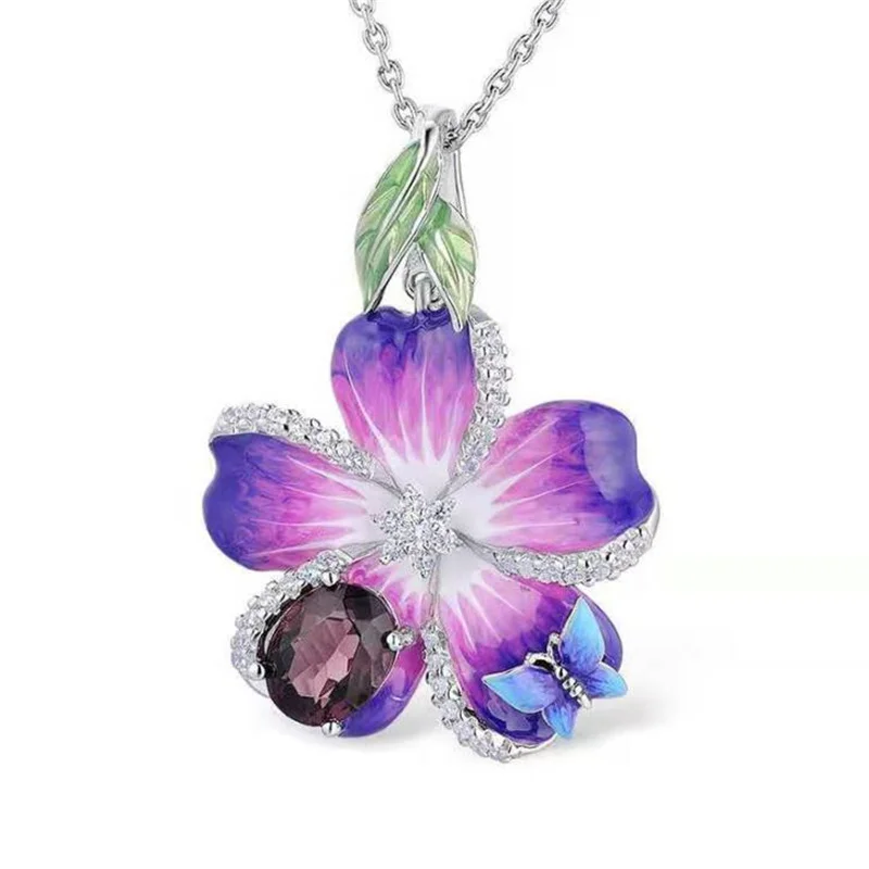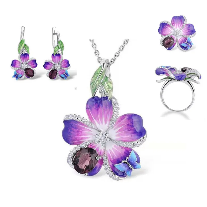 Популярная эмалированная женская подвеска с фиолетовой бабочкой, 2021, модные женские колье, серьги, кольца, наборы, аксессуары для свадебной вечеринки