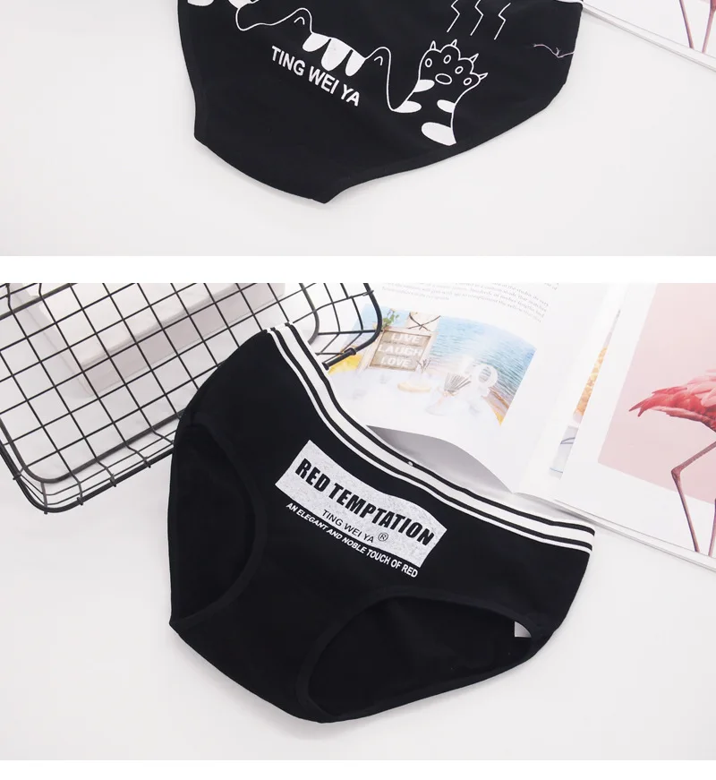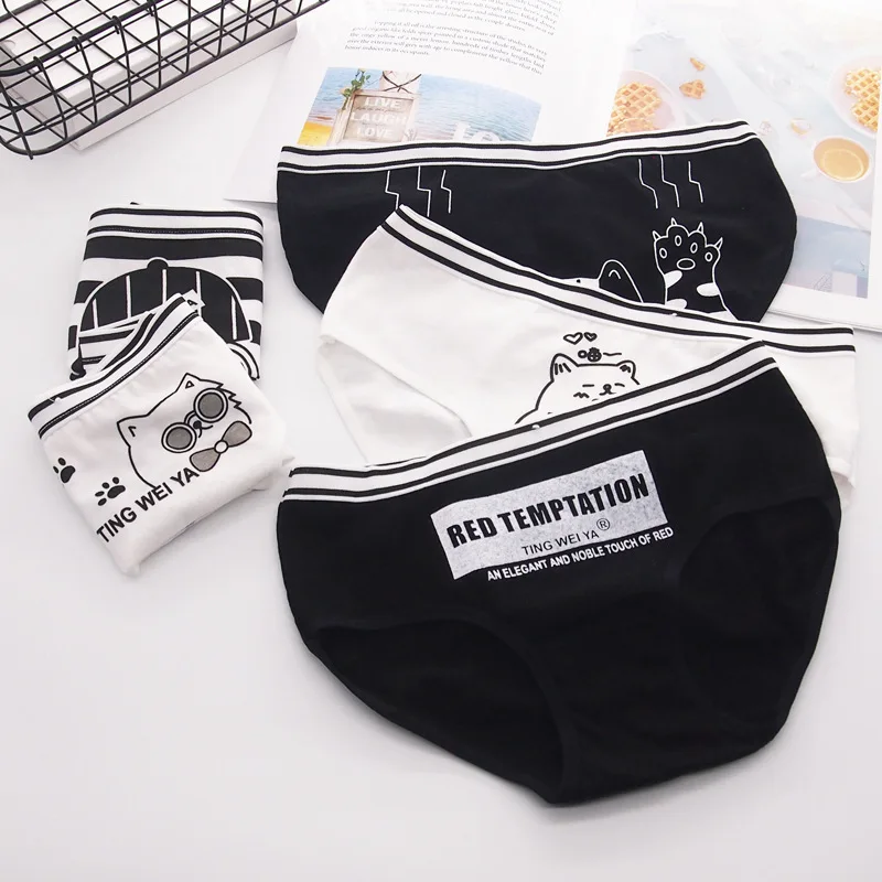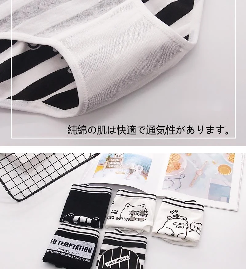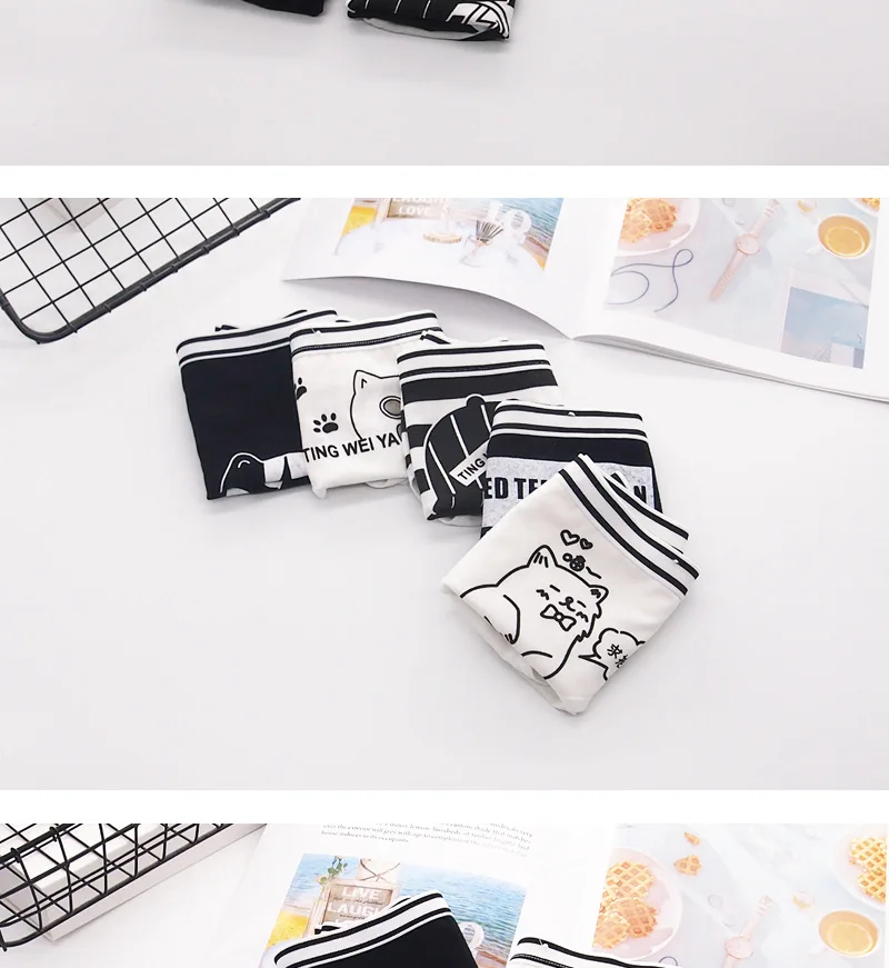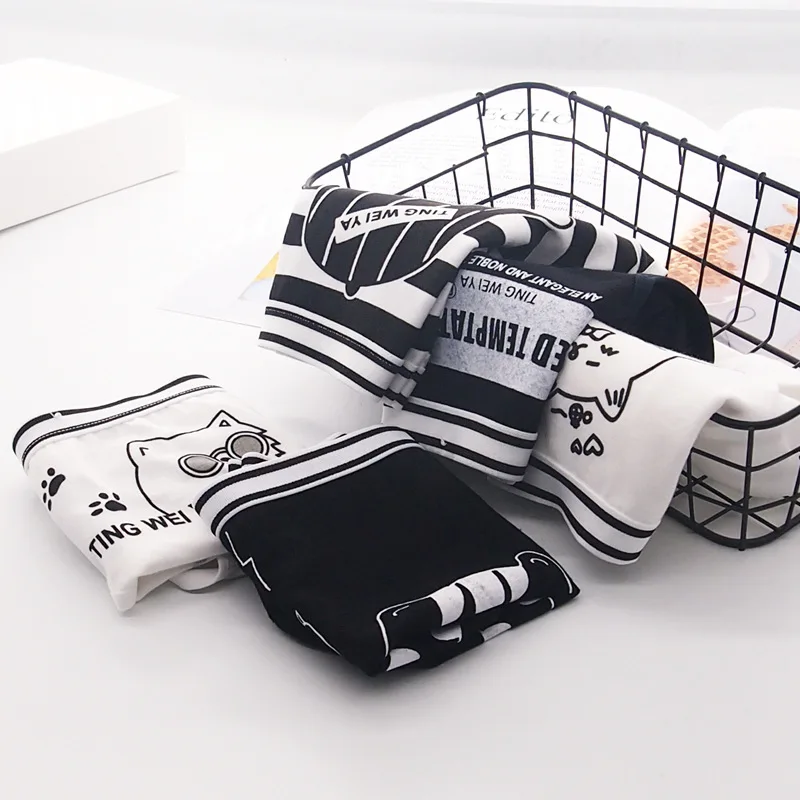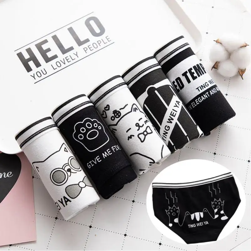5 шт.лот высококачественное женское нижнее белье хлопковое нижнее белье Черно-белые треугольные трусики с мультяшным рисунком кошки трусики для девушек Сексуальное белье