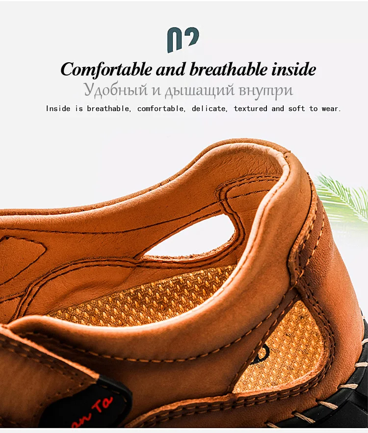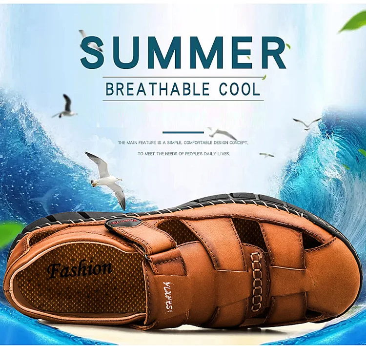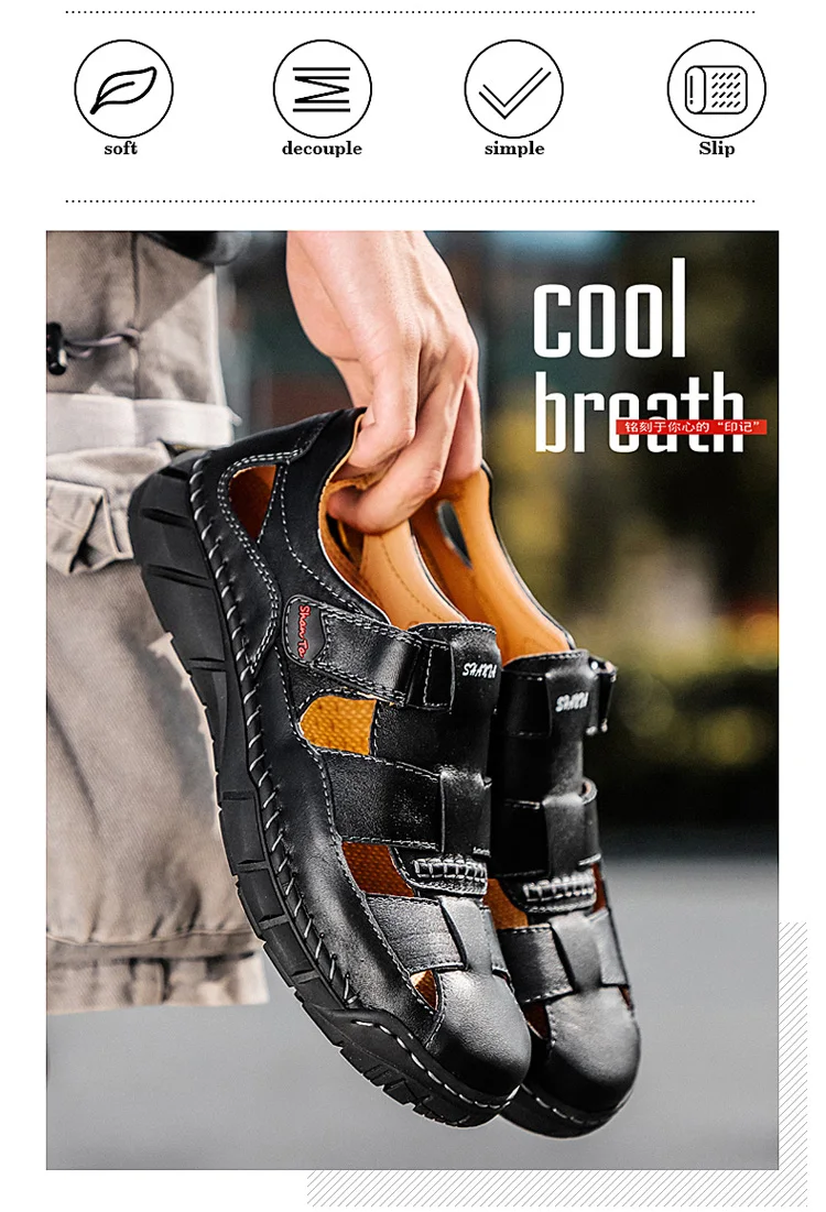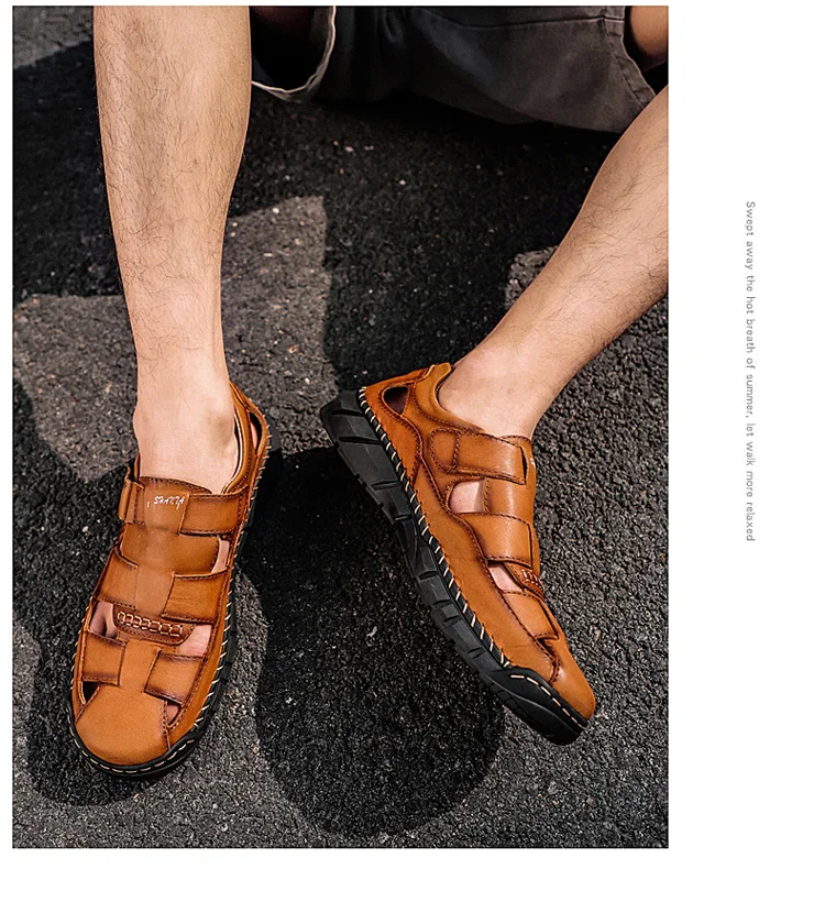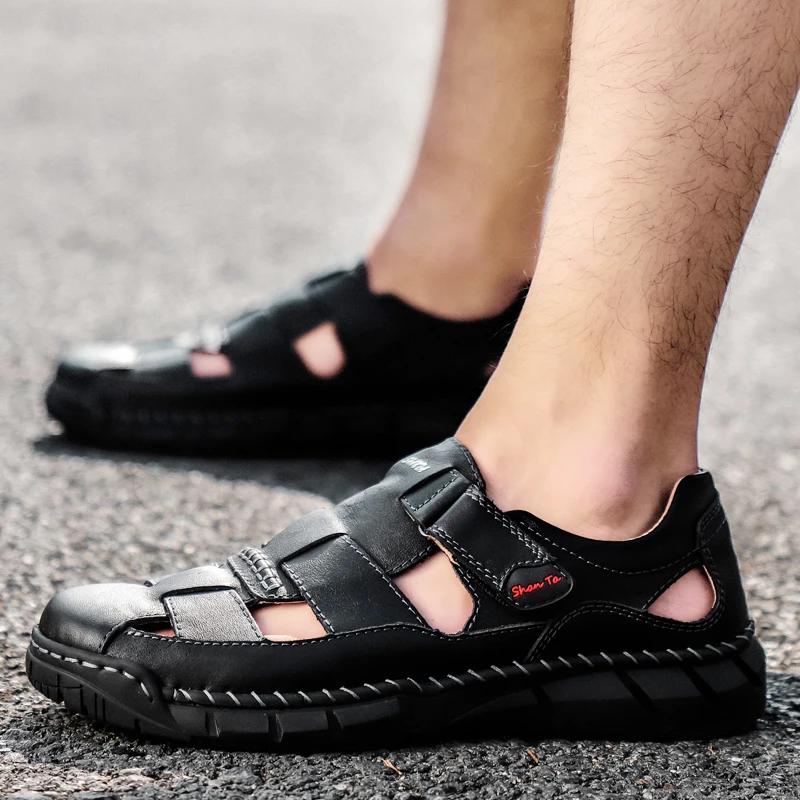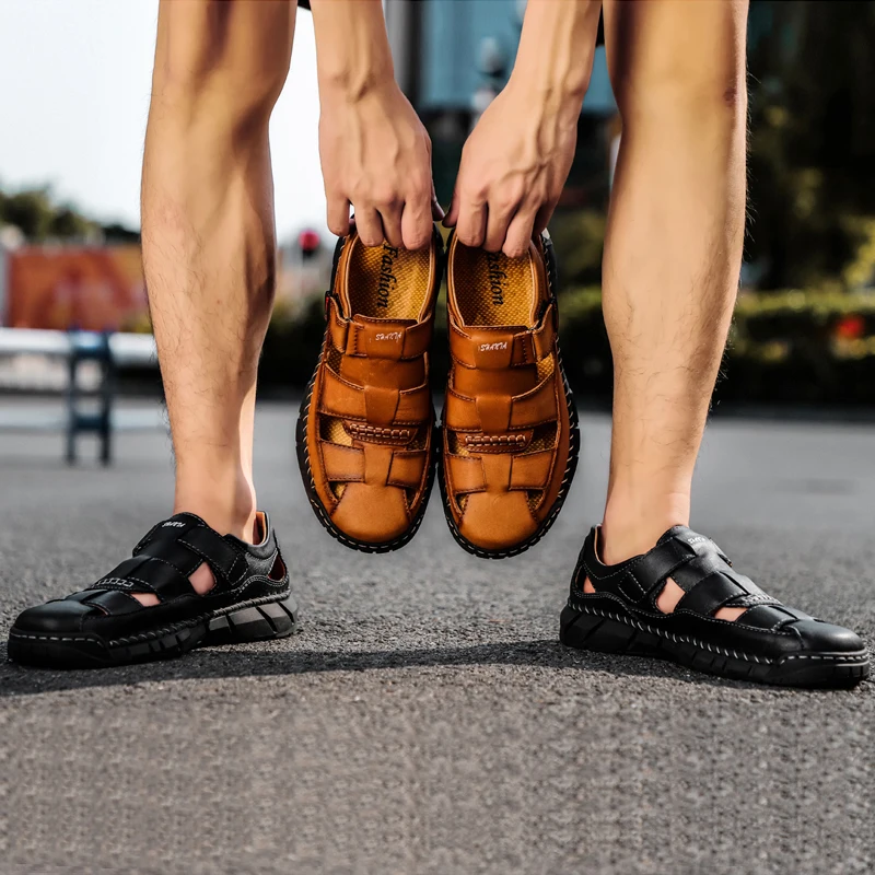 Мужские сандалии из натуральной кожи, летние дышащие пляжные сандалии, мужские модные тапочки, удобные мужские уличные повседневные кроссовки