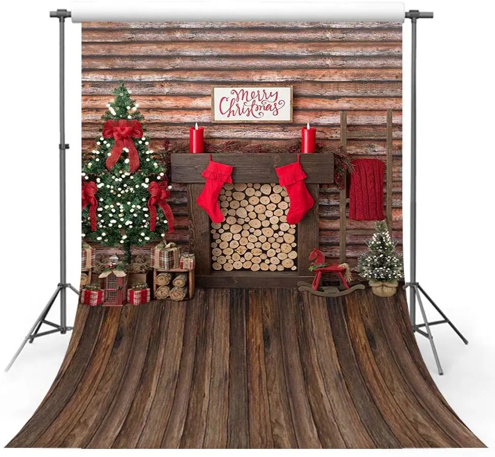 Рождественский фон для фотостудии с изображением деревянного камина