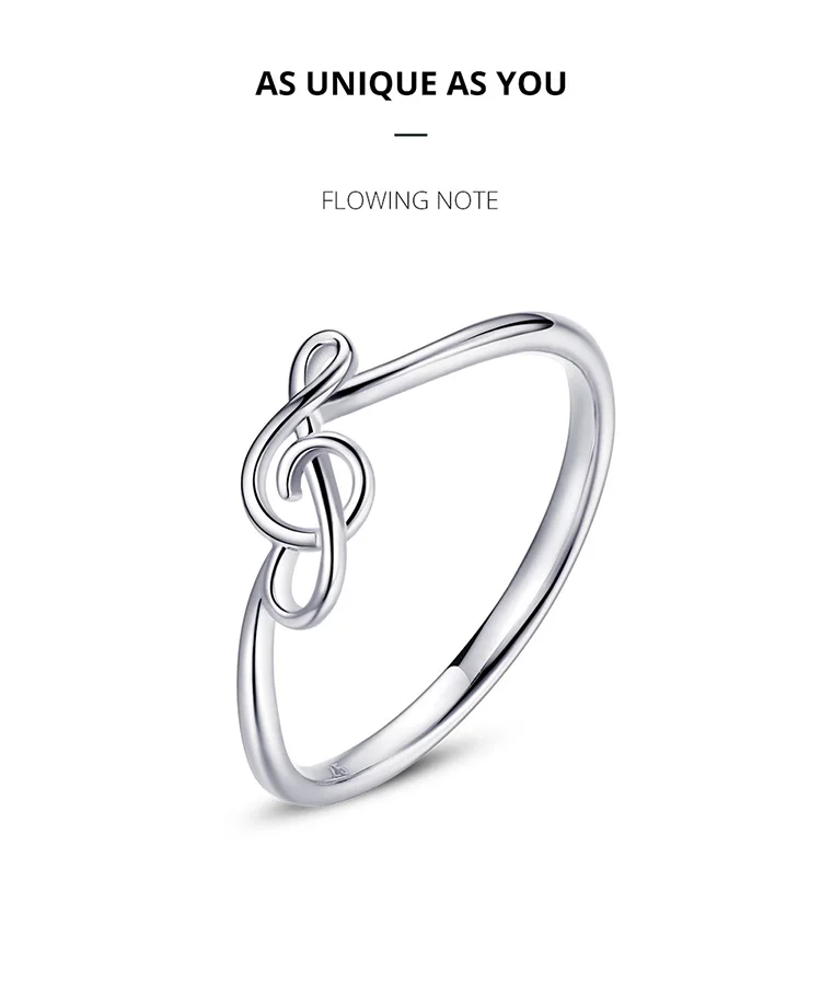 Женское винтажное музыкальное кольцо в виде ноты bamoer из стерлингового серебра 925 пробы, ювелирное изделие классического дизайна