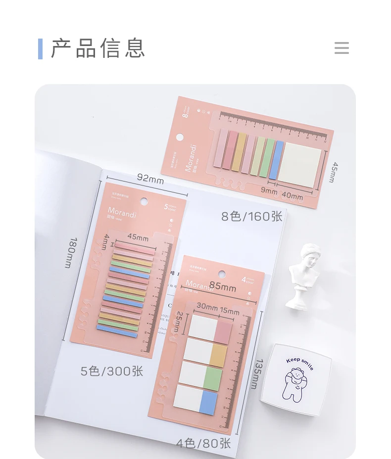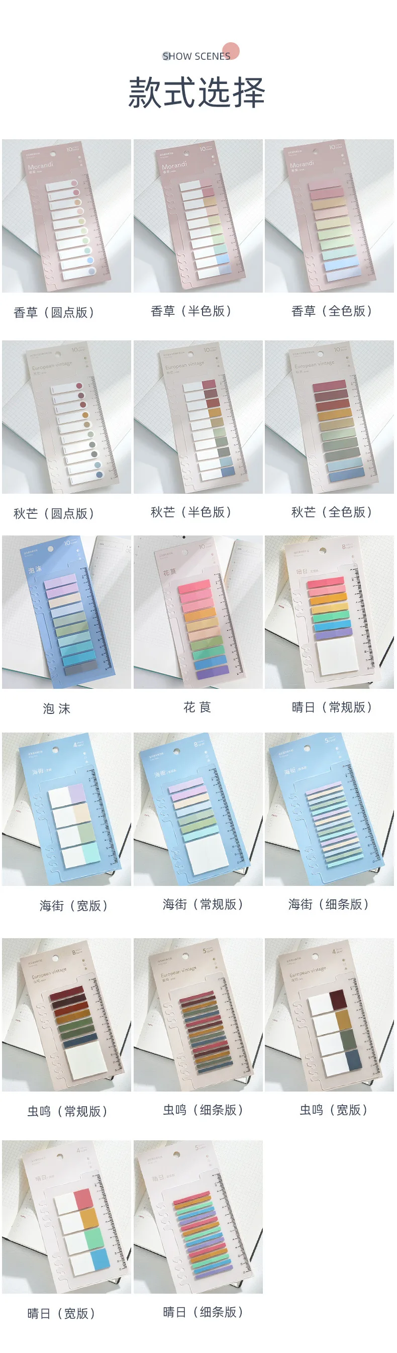Тип: индекс Post-it NotesМатериал: ПЭТАртикул: 17 видов конструкцийРазмер: см. Выбор стиляВес: ± 15 гПосылка: OPP