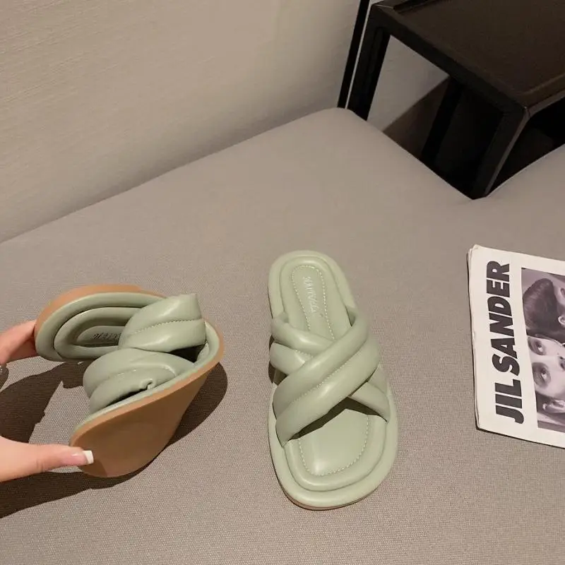 Женские пляжные сандалии на плоской подошве, сандалии зеленого цвета, лето 2021