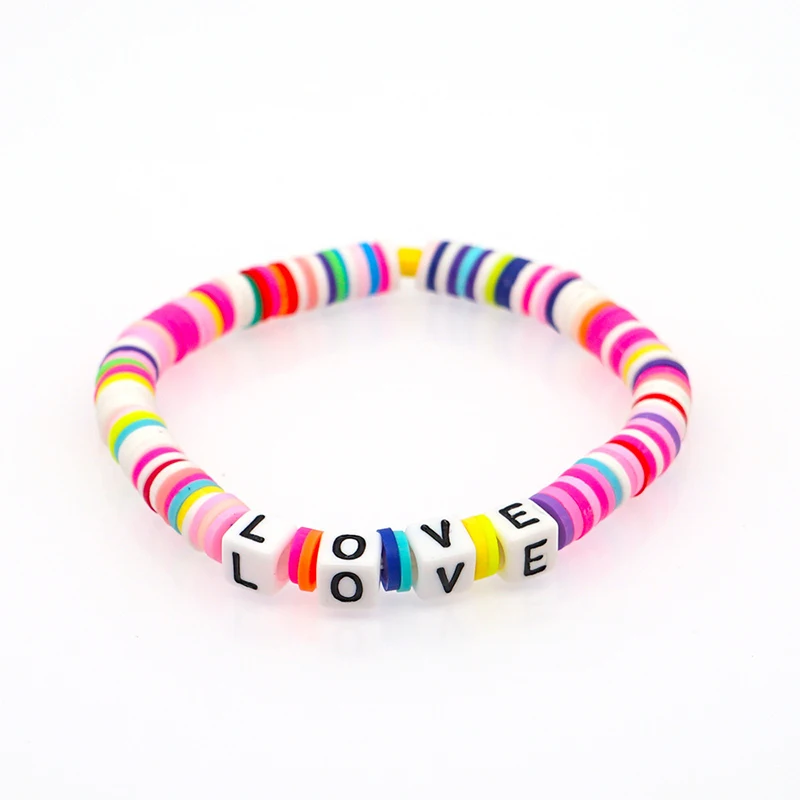Богемный браслет с надписью Love Initial из полимерной глины для же...