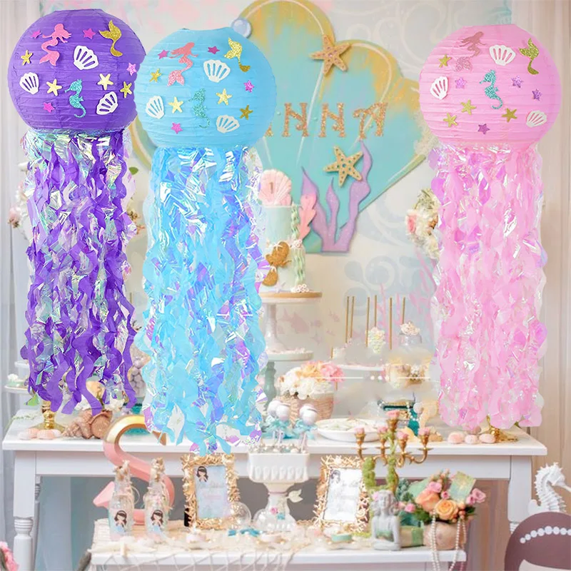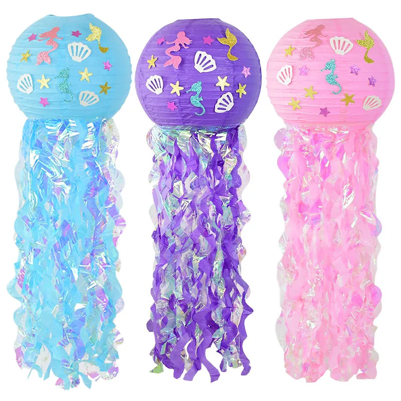 Тема русалки вечерние украшения DIY висит Медузы Фонари с рисунком маленькая русалочка Подводное царство День рождения вечерние украшения детский душ