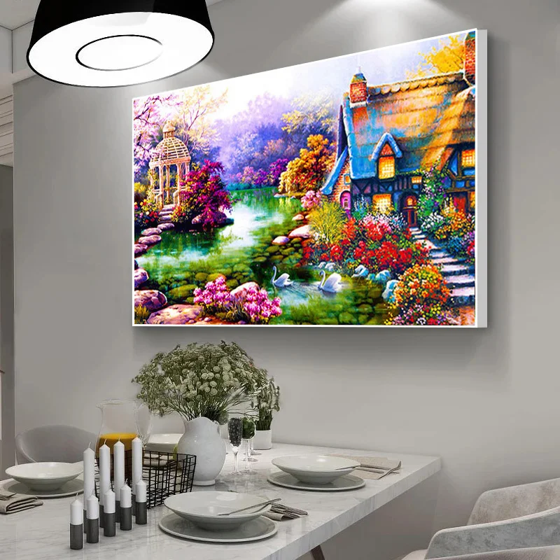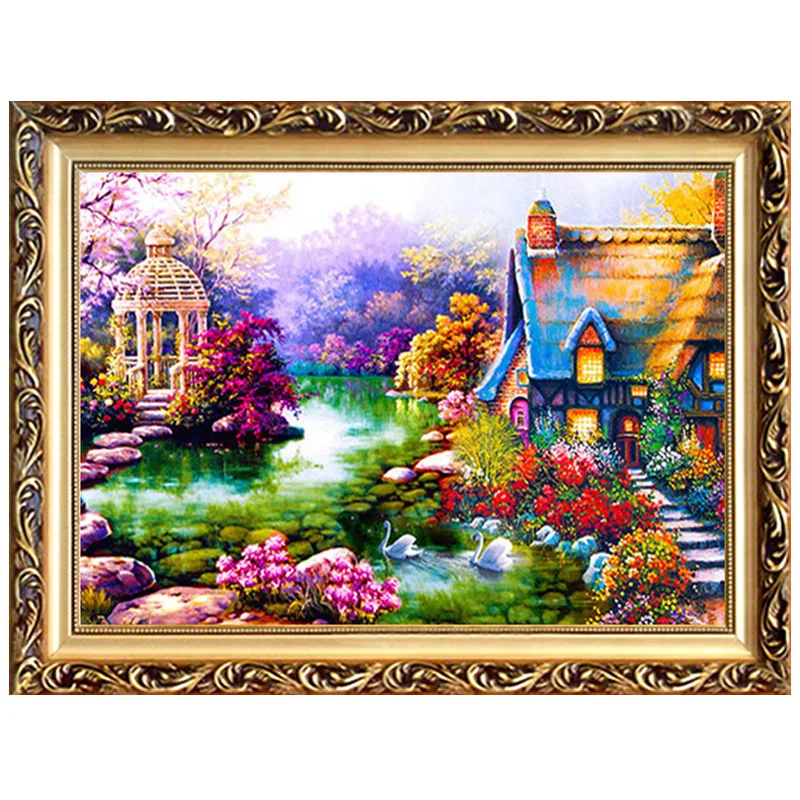 Алмазная живопись 5D, Алмазная мозаика пейзаж, коттедж, распродажа,...