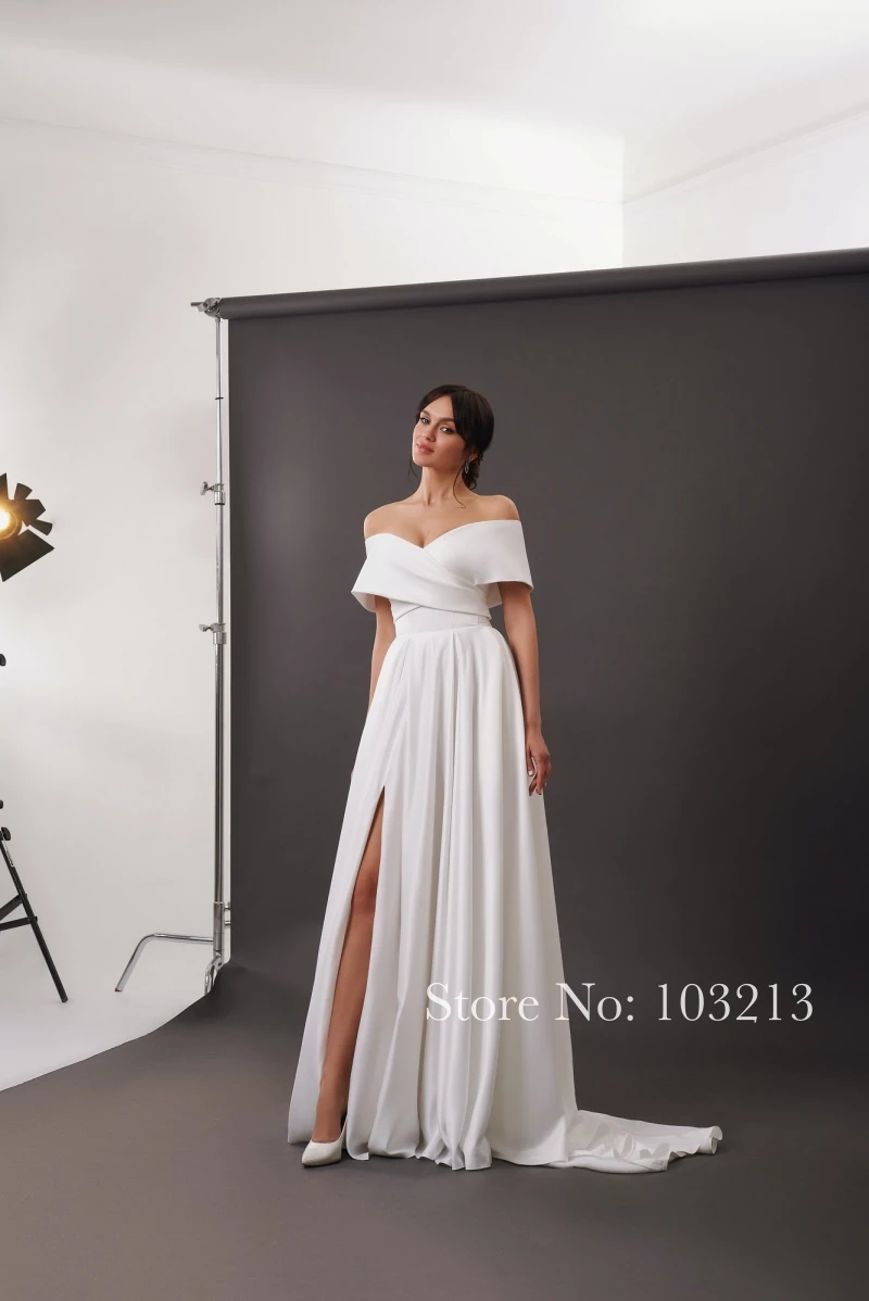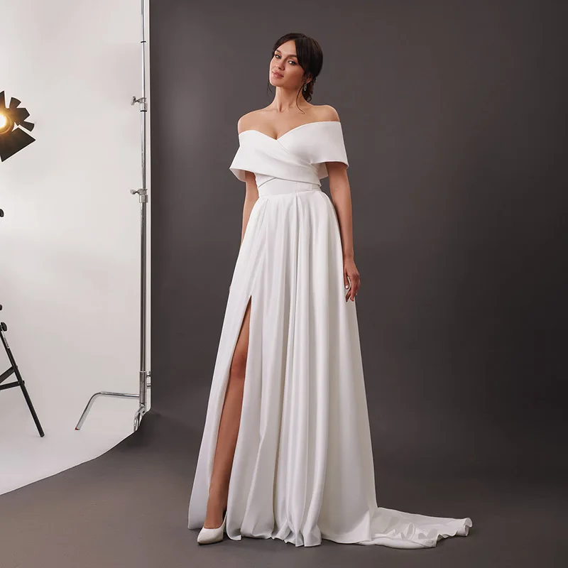 Простой дизайн 2021 Свадебные платья с открытыми плечами A-силуэт Свадебные платья плиссированный лиф длиной до пола платья невесты на заказ