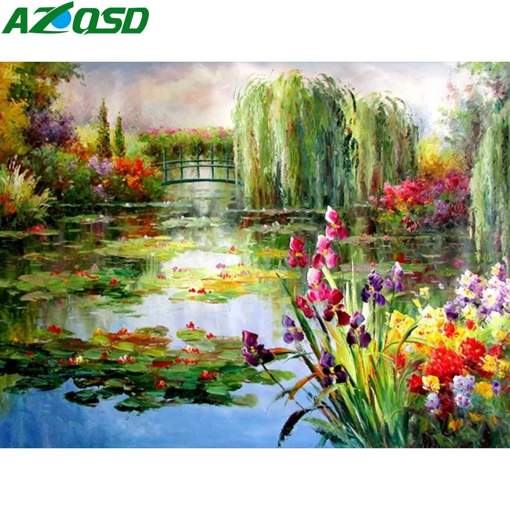Алмазная картина Название: AZQSD 5d Алмазный рисунок водяной лилии мозаика Алмазная вышивка полный квадрат/круглая дрель цветочный пейзаж продажа домашнего искусства декорации