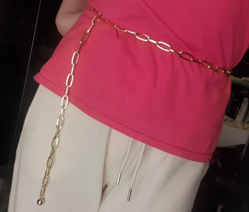 Шикарный пояс! Доставка очень быстрая! Цвет смотрится дорого, как лимонное (жёлтое) золото, очень благородный цвет цепочки! У меня талия 70 см и остаётся ещё очень длинный хвостик, так что подойдёт и на большие параметры.