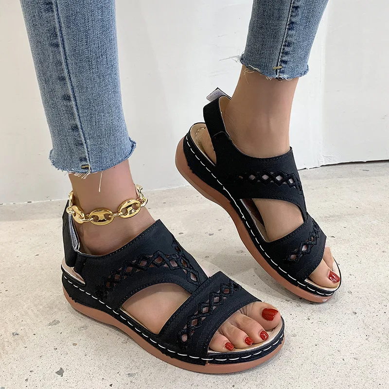 Сандалии женские на танкетке, Босоножки с открытым носком, винтажны...
