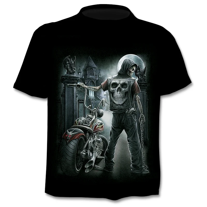 Футболка мужская в стиле панк, тенниска с рисунком черепа мрачного ...