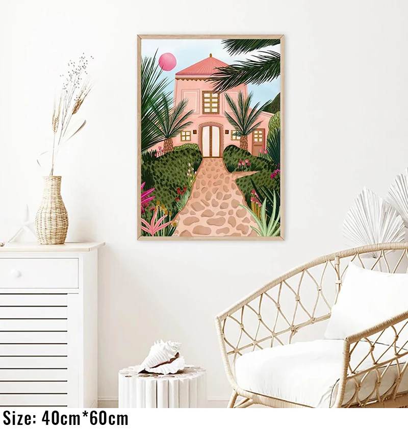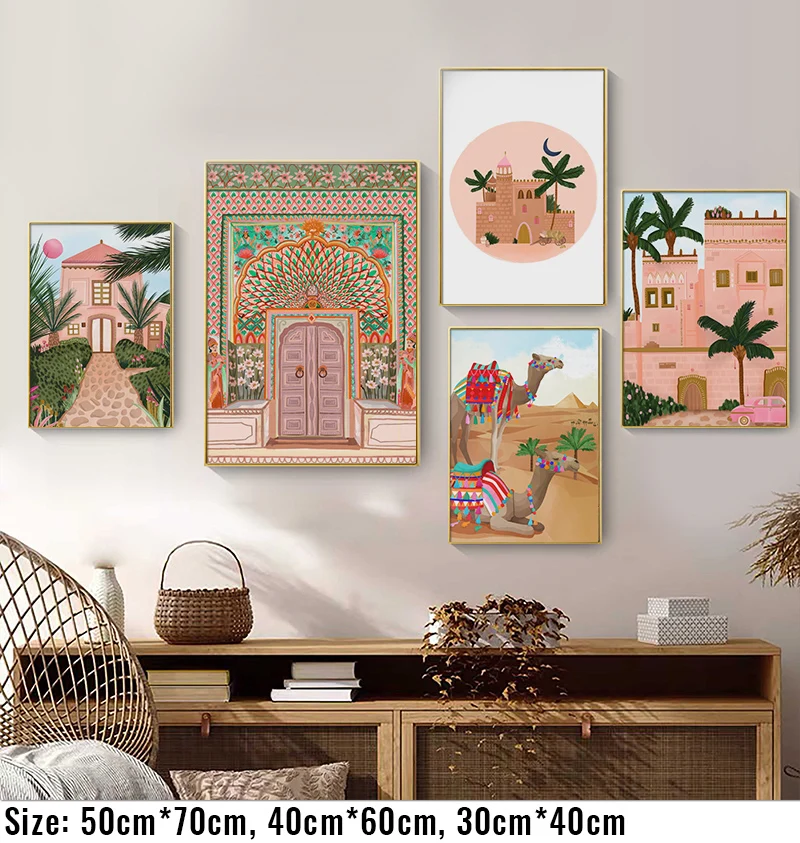 Марокканская стена художественный холст постер розовый Лотос ворота пальмы архитектурный принт скандинавские декоративные картины картина современный декор мечети