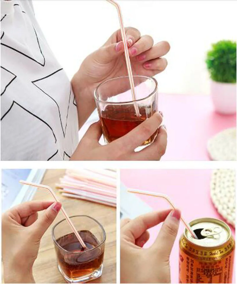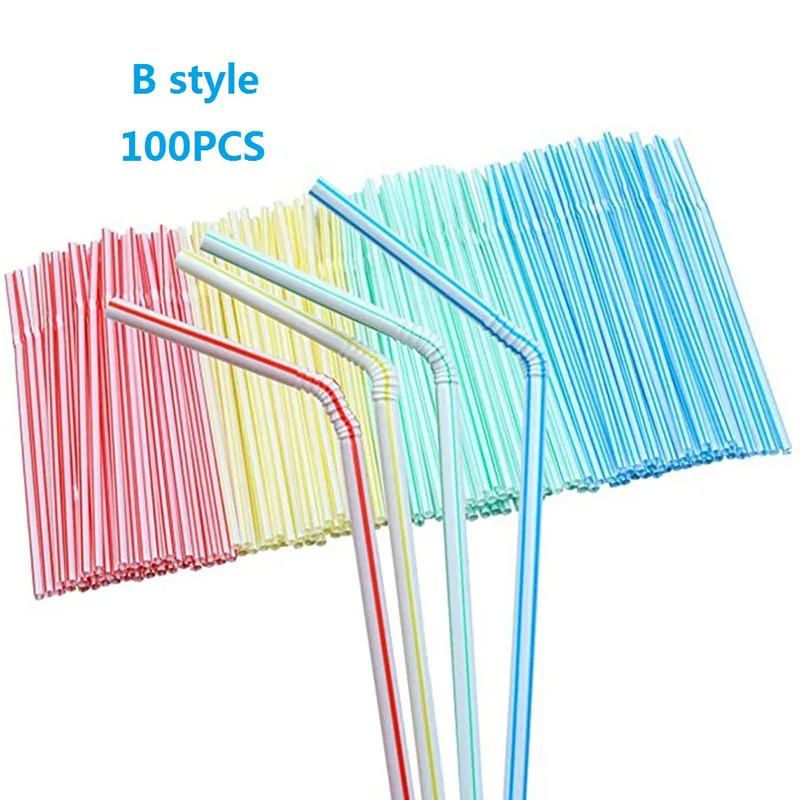 Разноцветные изогнутые пластиковые соломинки для напитков, аксессуары для напитков для свадьбы, вечеринки, бара, многоразовые соломинки для дня рождения, 100 шт.