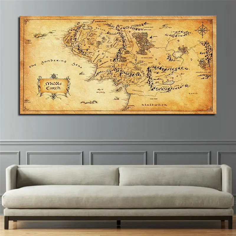 Картина в винтажном стиле, карта Средиземья, холст, постеры и принты, настенные картины для гостиной, спальни, Куадрос
