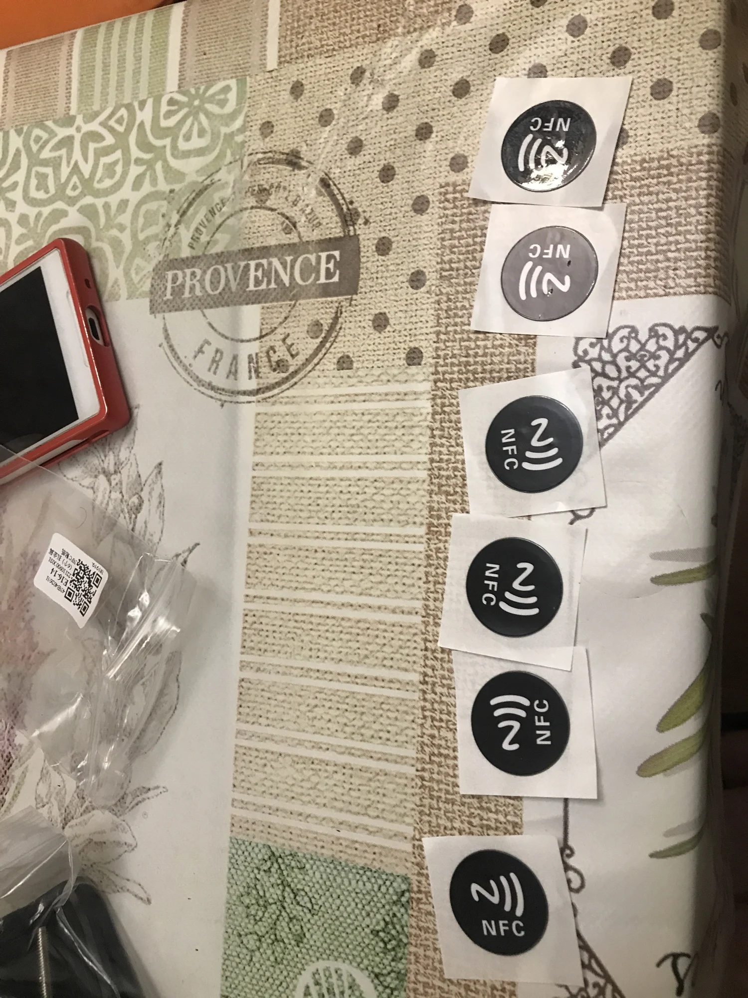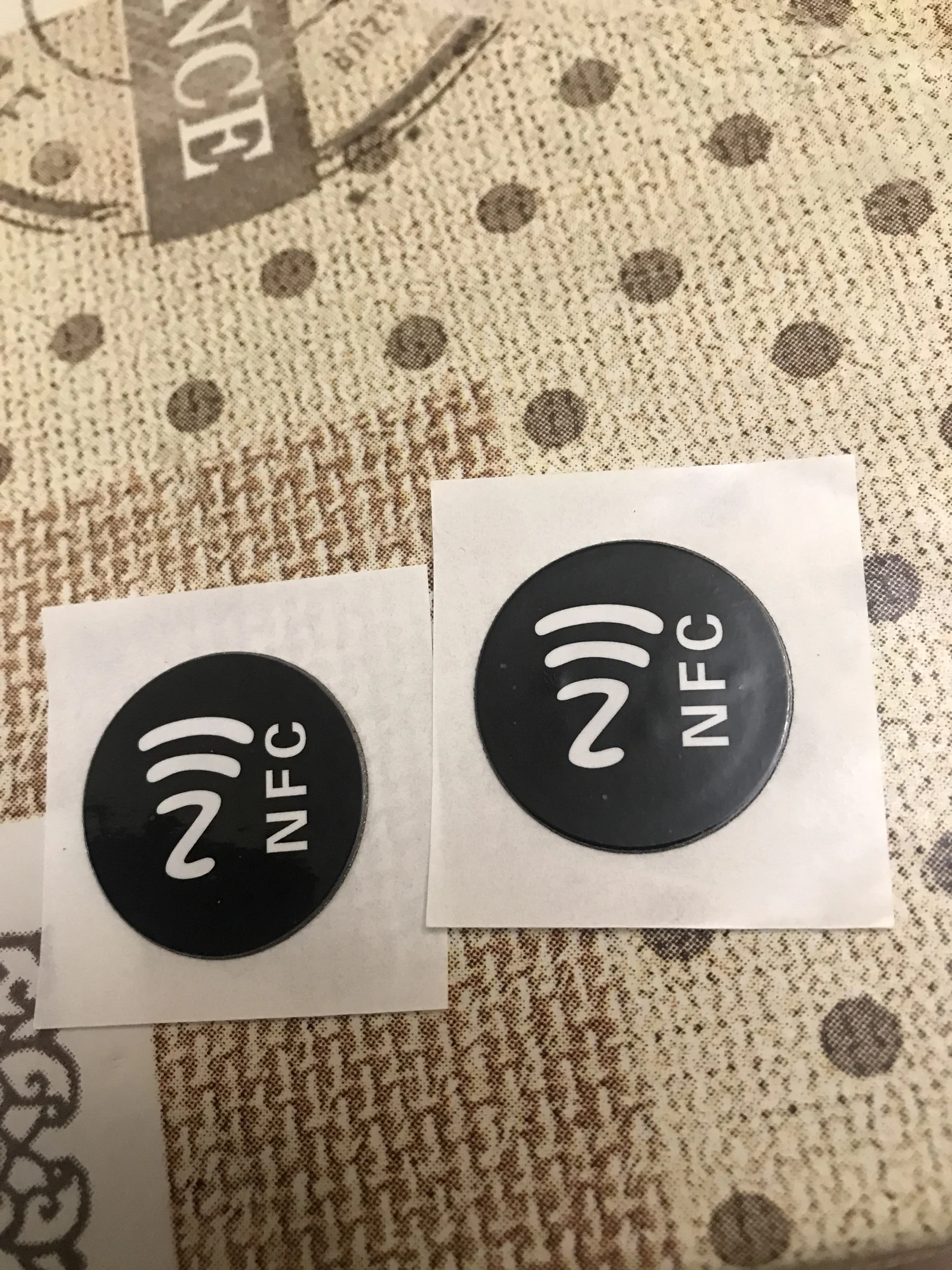 Клей очень слабый. Одна вещь, которую никто не знает: если вы хотите записать визитку (vcard), эта карта не подойдет. VCard должен приблизительно 520 оперативной памяти. Вы должны приобрести nTAG Модель 216. Чтобы использовать iPhone для записи, работает только приложение под названием NFC.