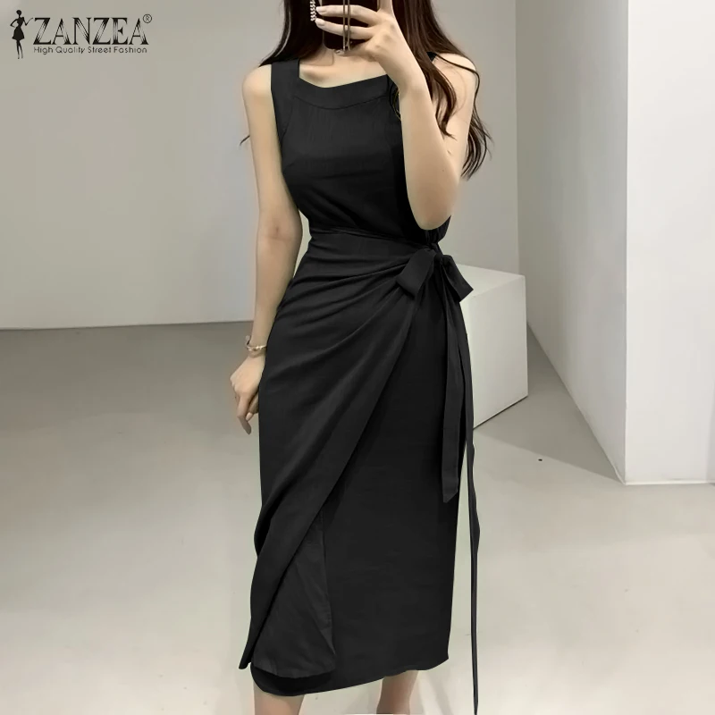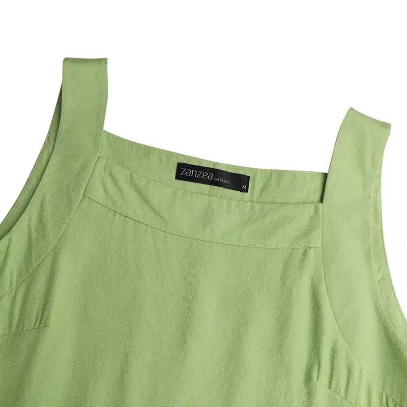 2022 ZANZEA летнее Элегантное платье без рукавов с квадратным вырез...