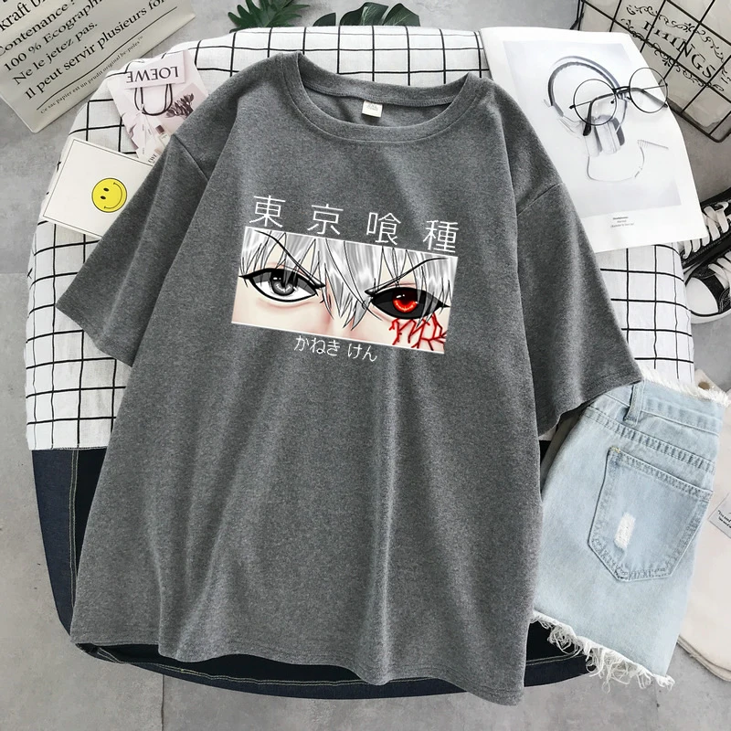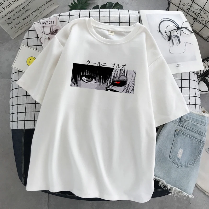 Японское аниме Токийский Гуль Funimation Kaneki Ken мультфильм Drucken потерянная Футболка Harajuku Повседневная панк Khlen уличная одежда женская футболка