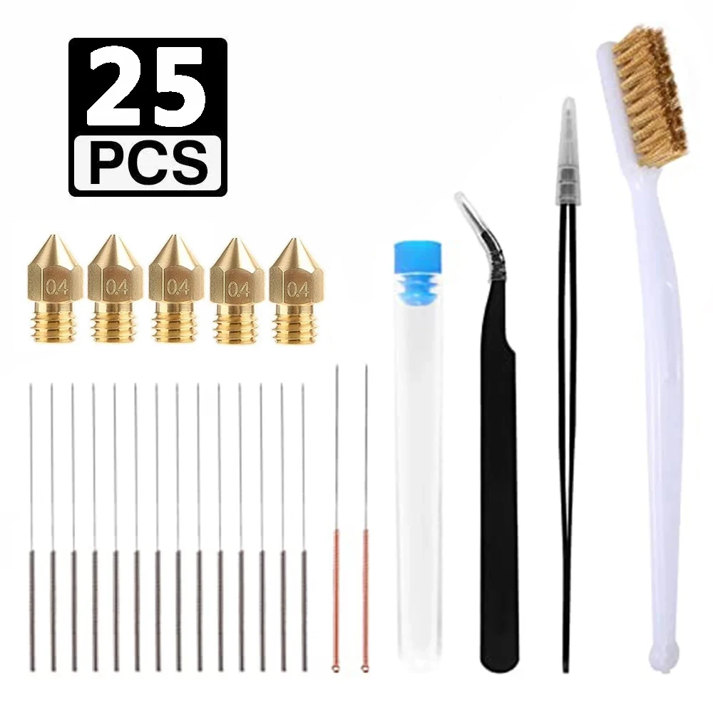 25 шт.компл. 3D-принтеры Насадка Набор чистящих средств для ухода за 16 шт. чистые иглы очиститель, комплект из 2 предметов очиститель для пинцета, 1 Медь щетка, набор инструментов