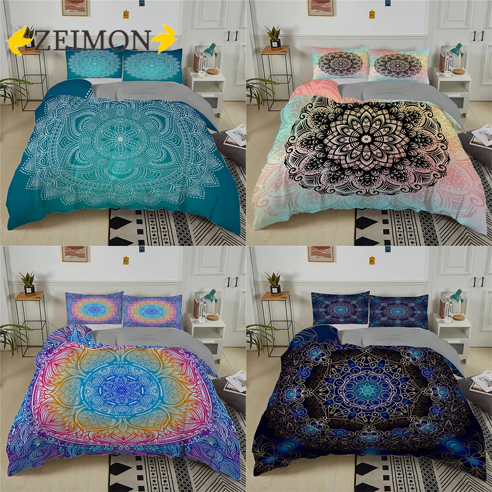 Комплект постельного белья ZEIMON в богемном стиле из 23 предметов с мандалой, односпальное, двуспальное, двуспальное одеялопододеяльник и наволочка