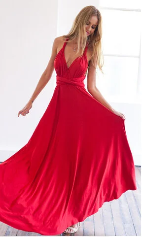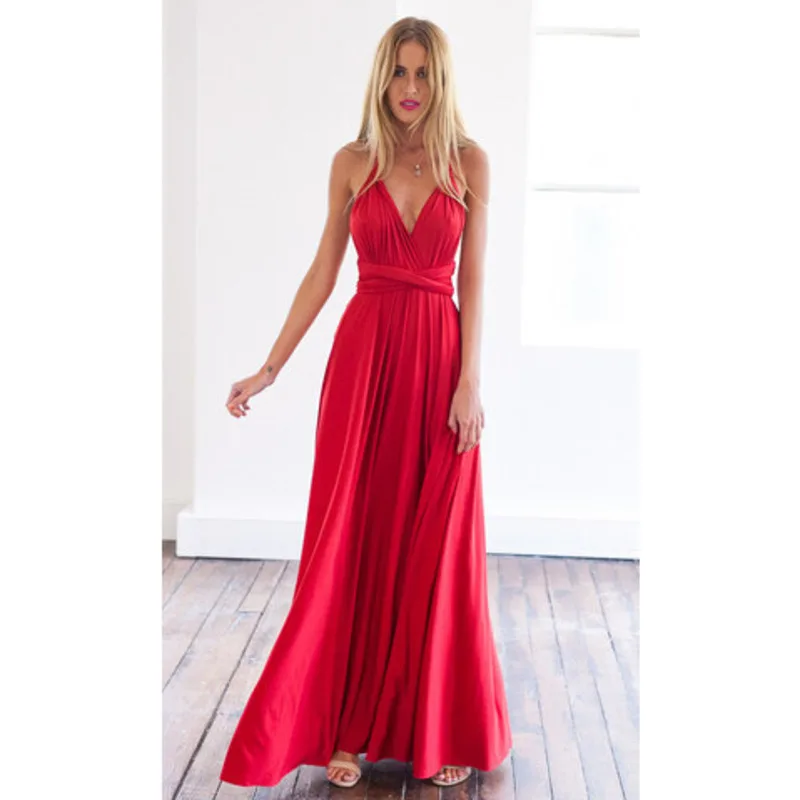 Женское платье-трансформер с запахом, красное Бандажное длинное пла...