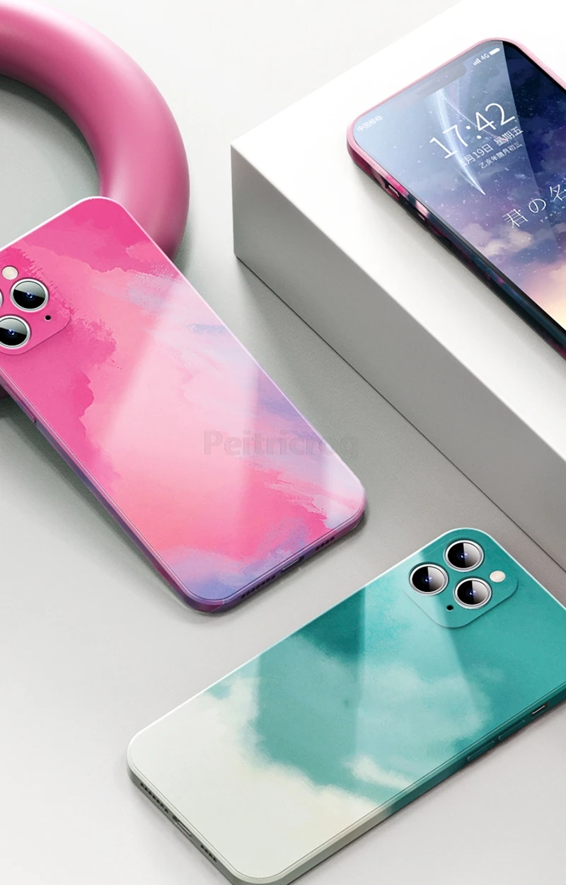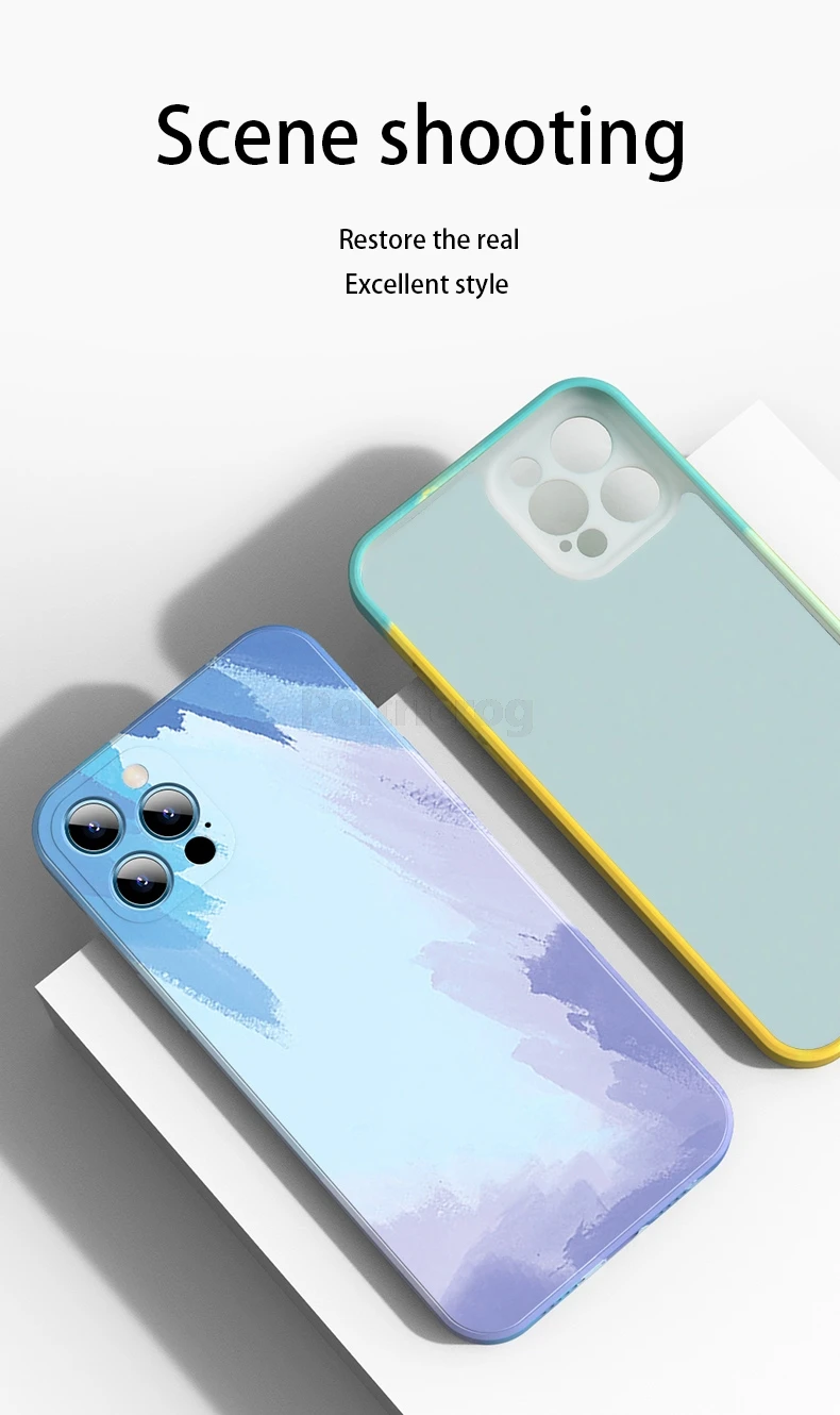 Акварельный Мягкий Роскошный чехол из жидкого силикона для iPhone 12 11 Pro X XR XS Max 8 7 Plus SE 2020 12 Mini Красочный защитный чехол