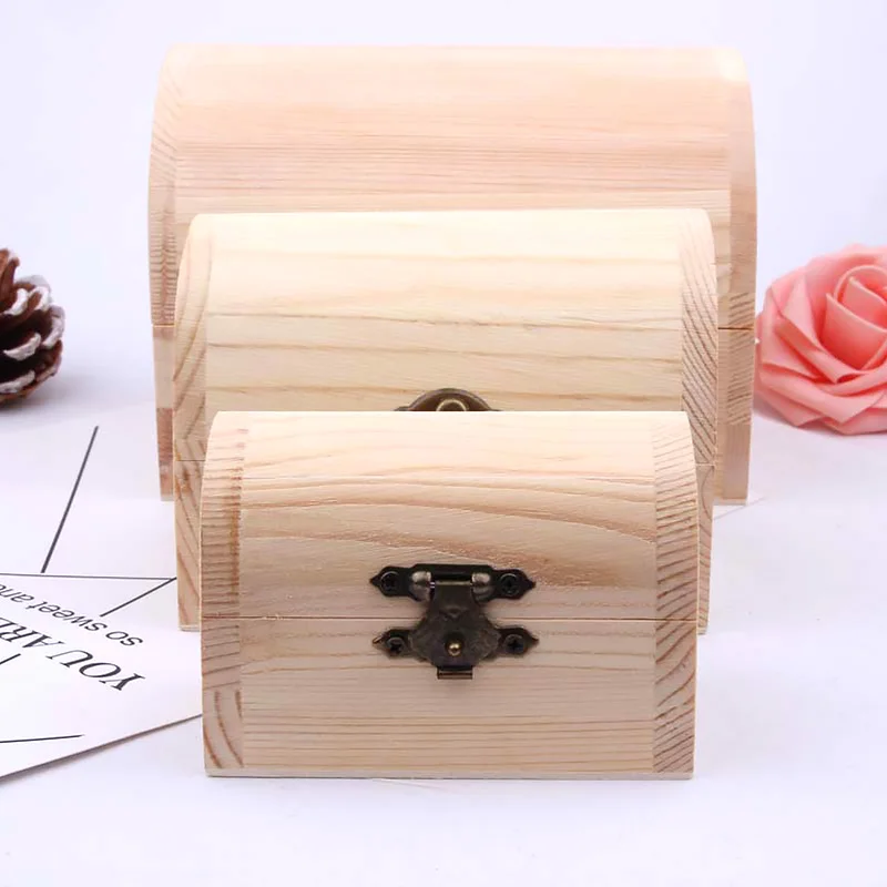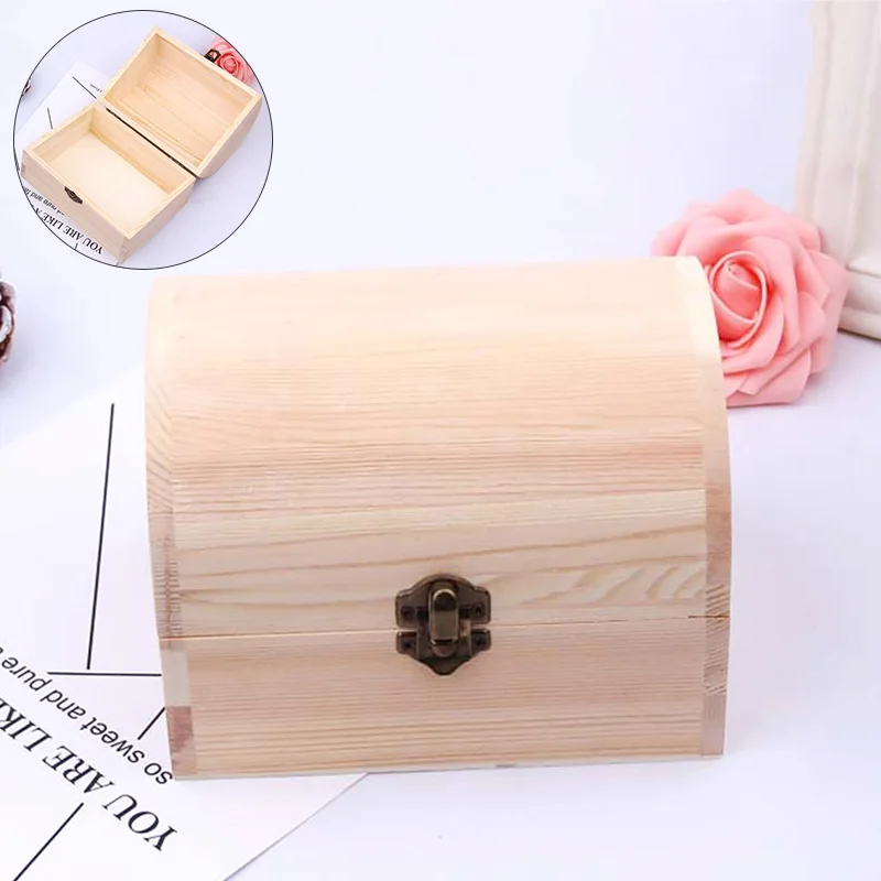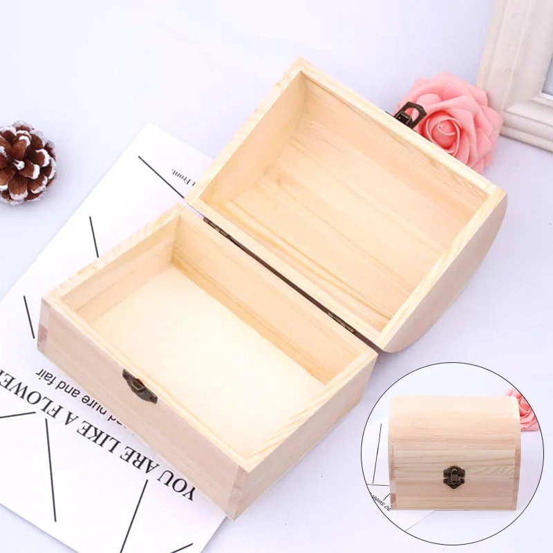Деревянная коробка для хранения 1 шт., деревянная сосновая прямоугольная откидная коробка из твердой древесины, семейный предмет, драгоценности