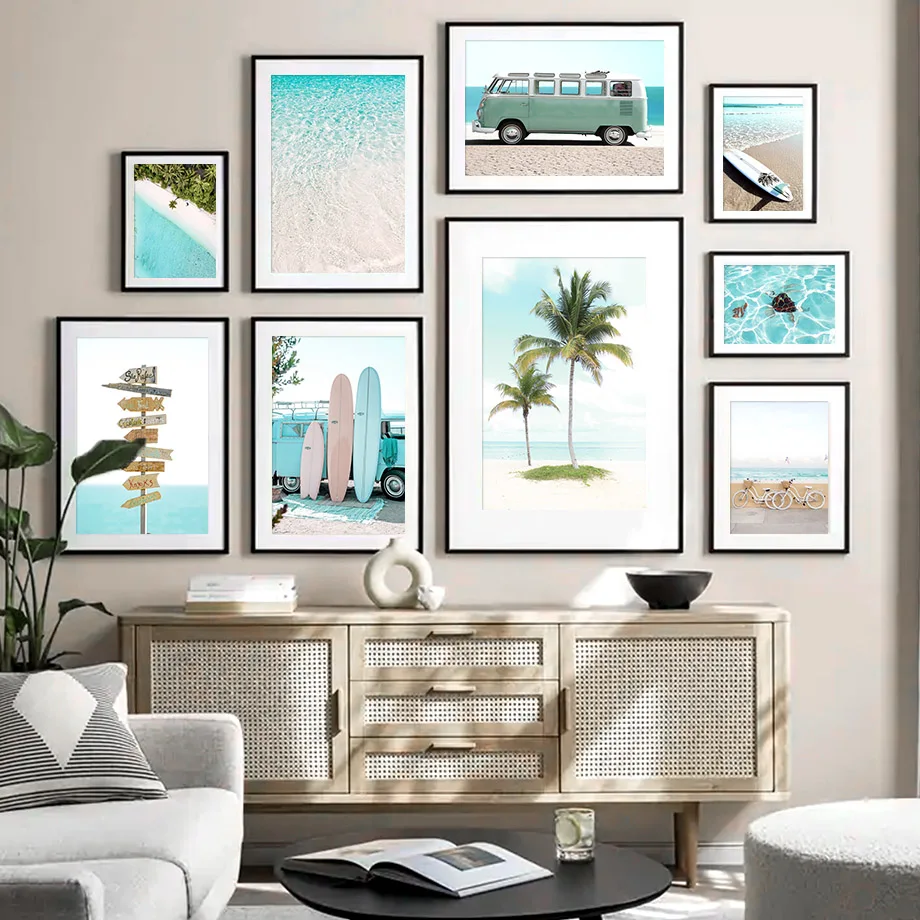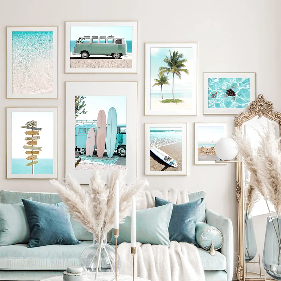 Морской пляж автобус доски для серфинга пальмовые деревья летняя настенная живопись холст скандинавские постеры и принты настенные картины для декора гостиной