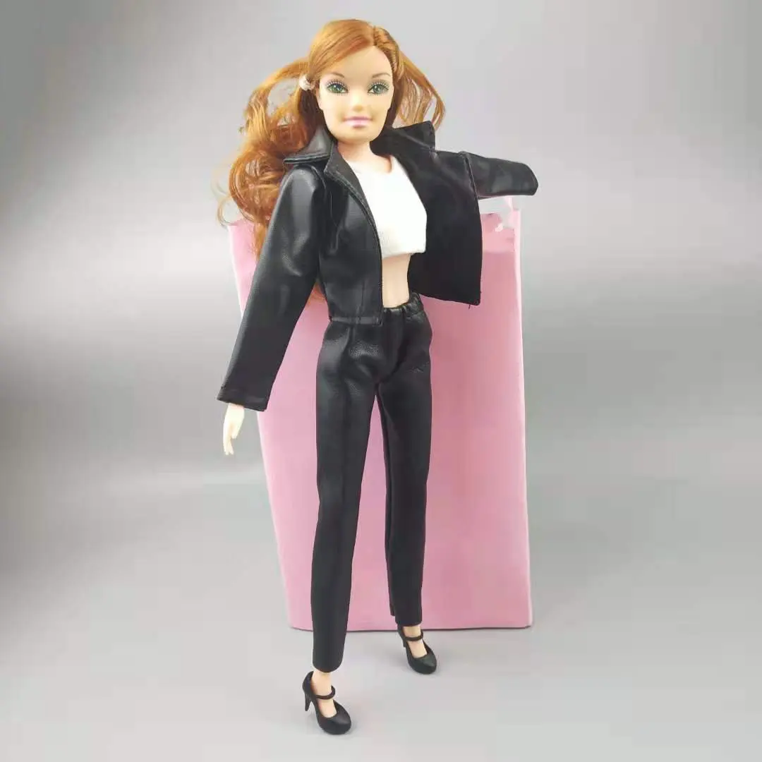 Комплект одежды для куклы Барби, черный кожаный жакет, топ и штаны,...