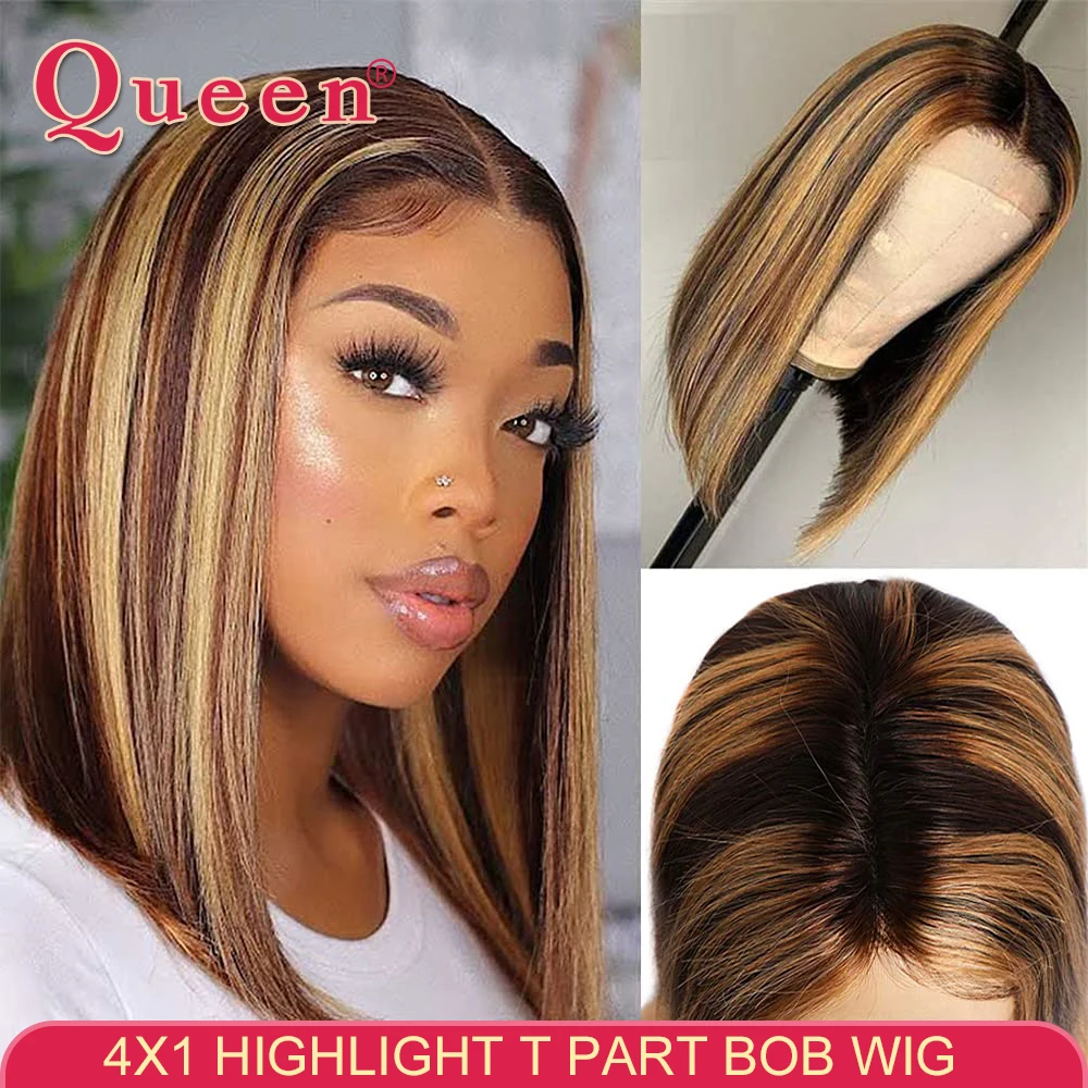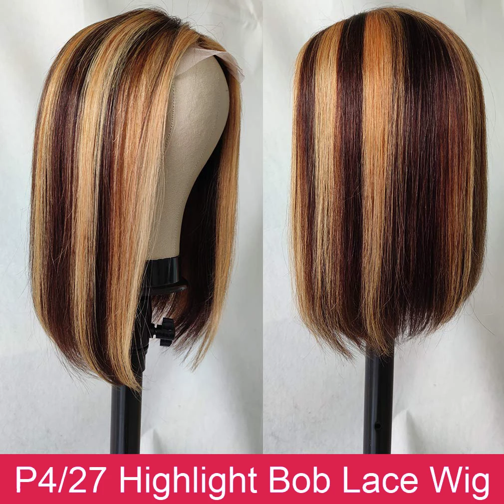 Парик хайлайтер Боб, человеческие волосы, бразильский парик с Омбре на сетке, парик из натуральных волос 4*1 T, короткий парик из человеческих волос Боб для женщин, королева