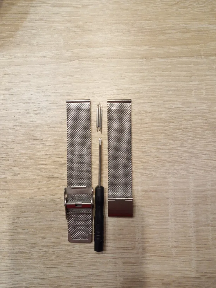 Отличный ремешок! В комплекте 3 штифта и отверточка-рогатулька для замены пружинных штифтов.
