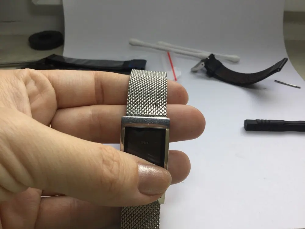 Хороший ремешок. В комплекте препления и спец инструмент. В крепления на часах подошёл идеально. Единственное защёлка слабовата, но можно немного подогнуть хвостик и все норм, застегивается покрепче.