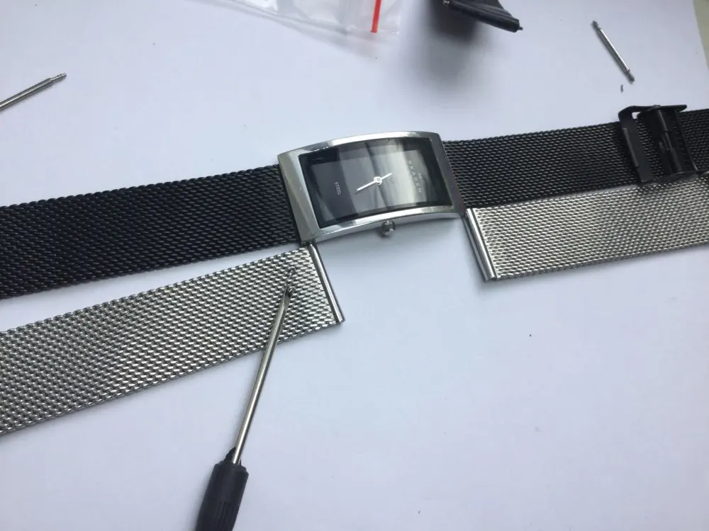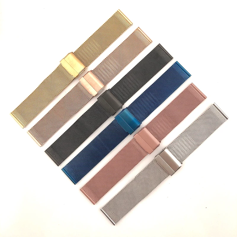 Миланский ремешок для часов 12 мм, 14 мм, 16 мм, 18 мм, 20 мм, 22 мм, 24 мм, универсальный ремешок для часов из нержавеющей стали, черный, розовое золото, ремешок для часов, браслет