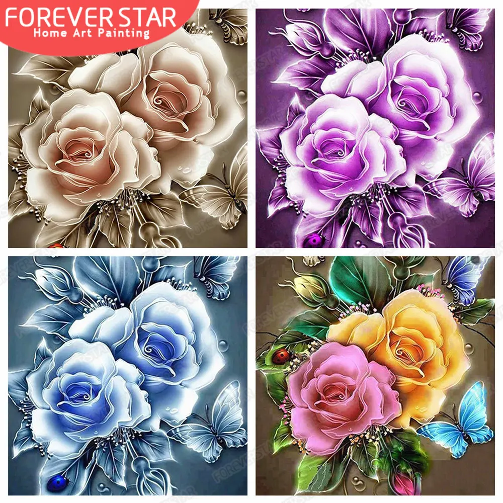 Полноразмернаякруглая алмазная живопись Foreverstar, цветок, роза, 5D алмазная вышивка, распродажа, мозаика Стразы в виде бабочки, настенное искусство